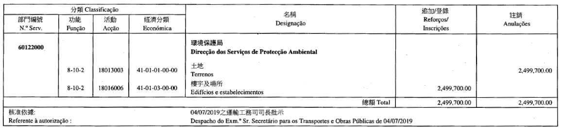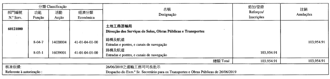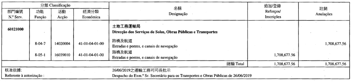 Direcção dos Serviços de Solos, Obras Públicas e Transportes, aos 24 de Julho de 2019. — O Director dos Serviços, Li Canfeng.