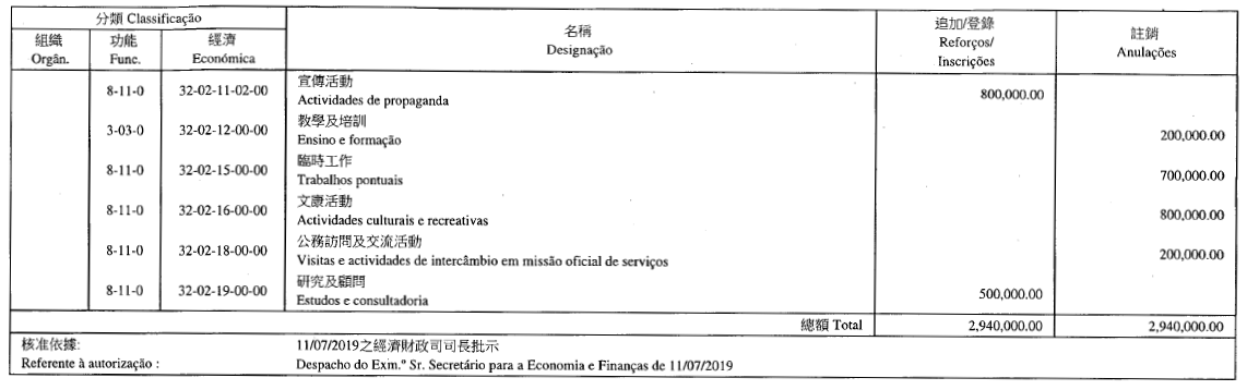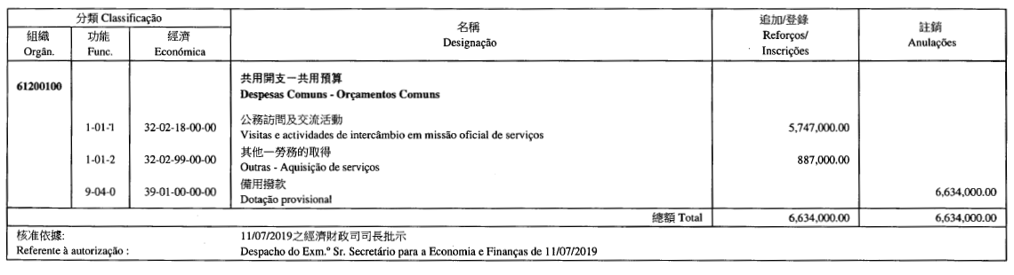 Por despachos da chefe do Gabinete do Chefe do Executivo, de 10 de Julho de 2019:
