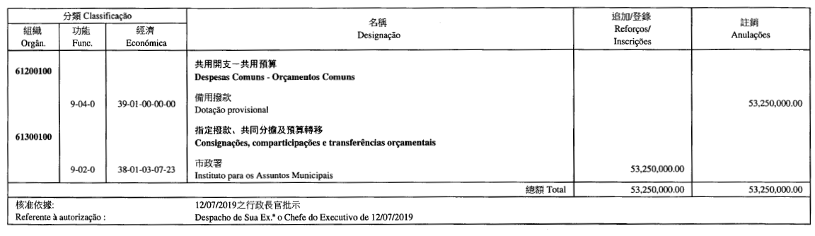 Por despacho de S. Ex.ª o Chefe do Executivo, de 15 de Julho de 2019: