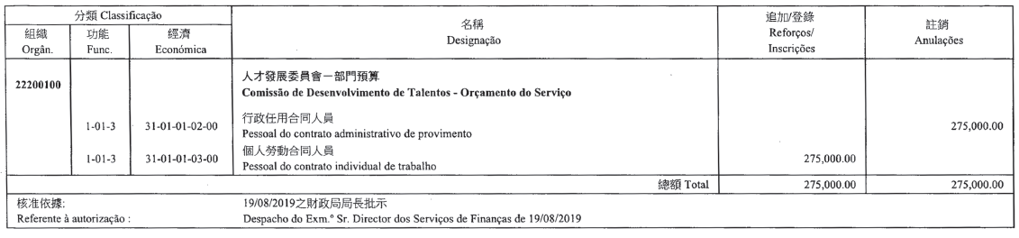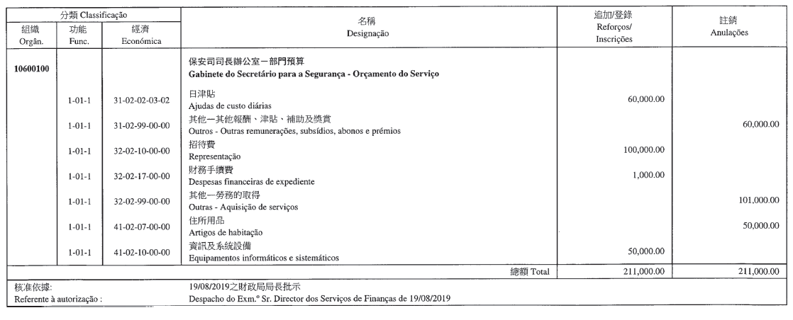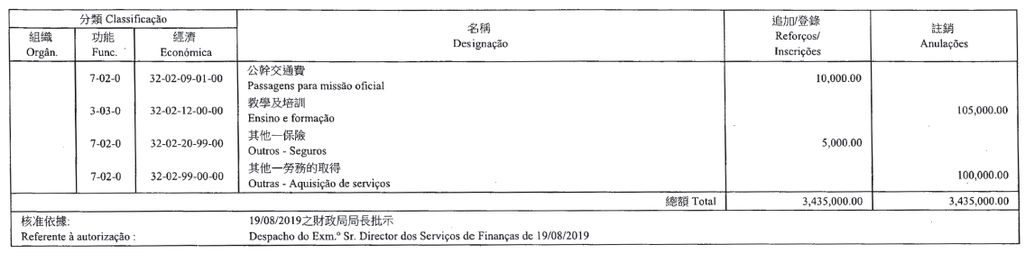 摘錄自本局行政暨財政廳廳長於二零一九年八月十四日作出的批示: