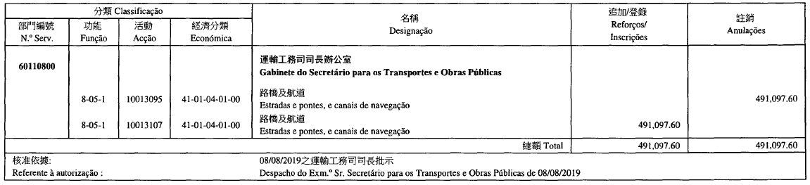 | 核准依據: | 30/08/2019之行政長官批示 | |||