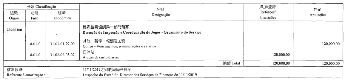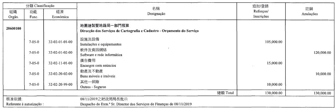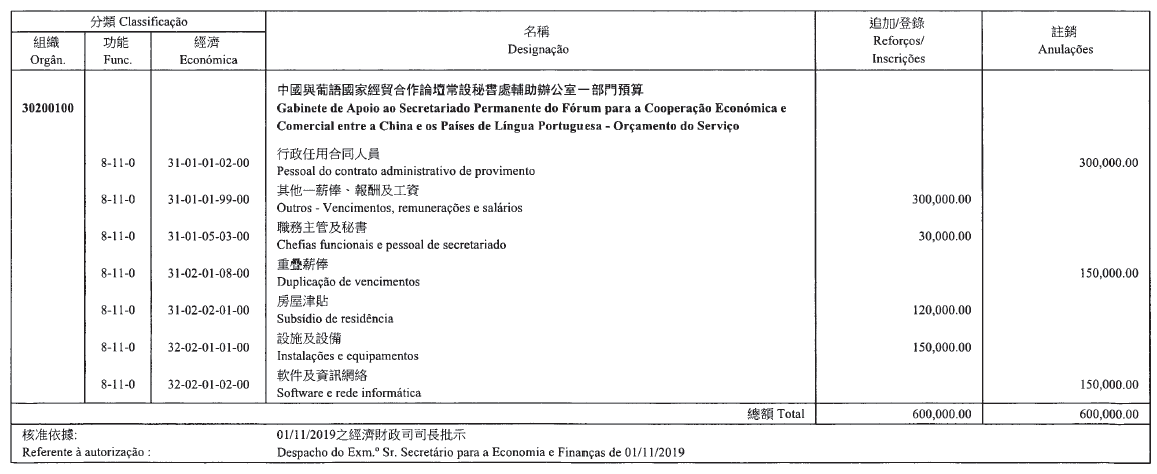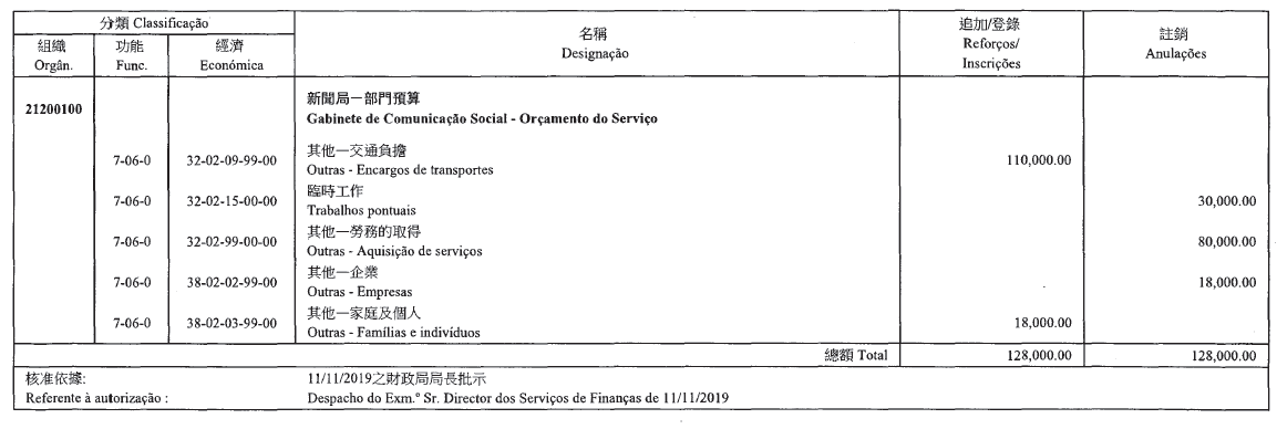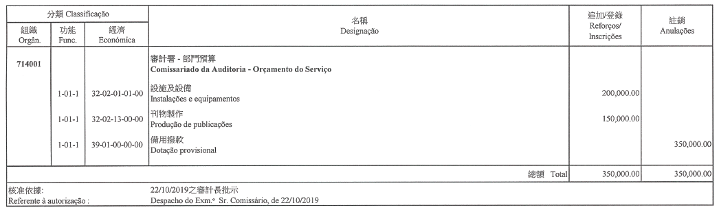 Gabinete do Comissário da Auditoria, aos 14 de Novembro de 2019. — A Chefe do Gabinete, Ho Wai Heng.