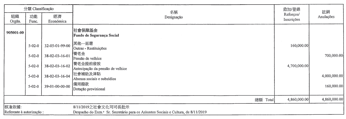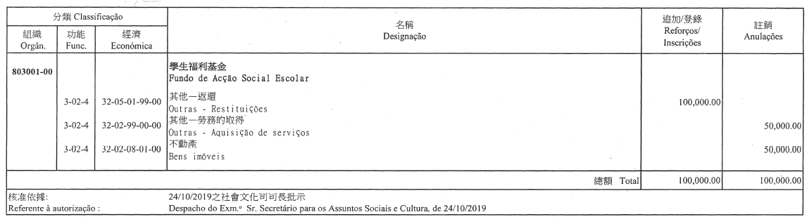 Por despacho do Ex.mo Senhor Secretário para os Assuntos Sociais e Cultura, de 17 de Outubro de 2019: