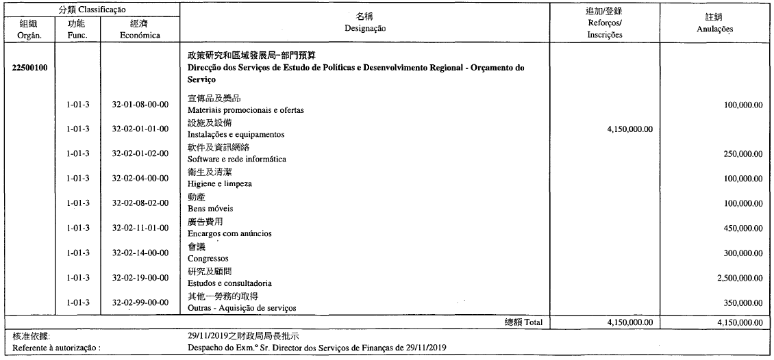 按照社會文化司司長於二零一九年十月三十日作出之批示:
