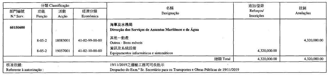 根據第12/2015號法律第四條第二款及第三款之規定,吳國華在本局擔任第一職階輕型車輛司機職務的行政任用合同自二零一九年十二月三日起續期一年。