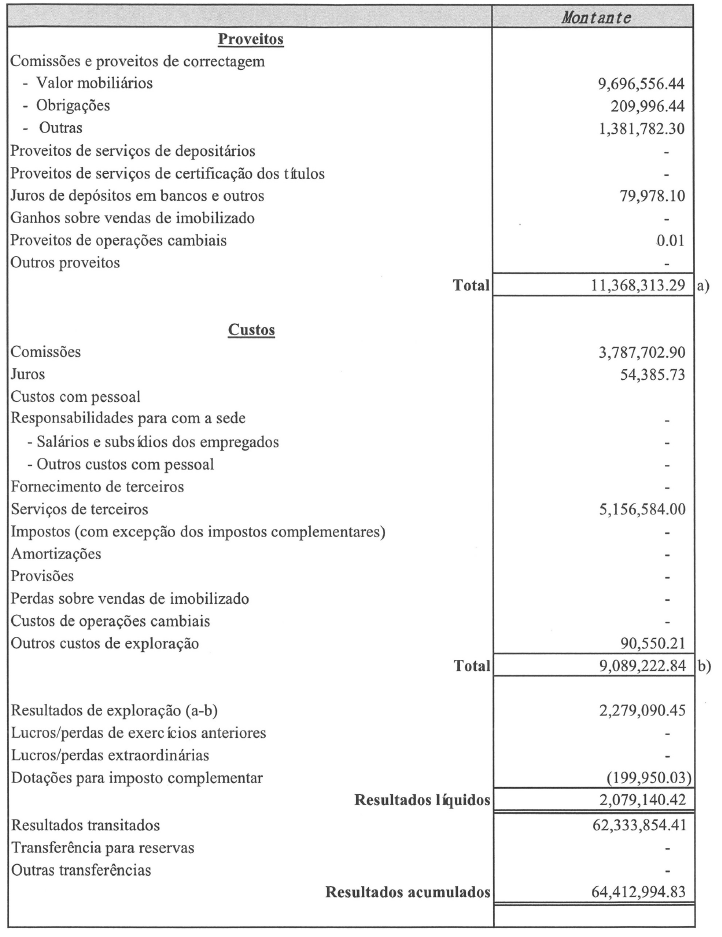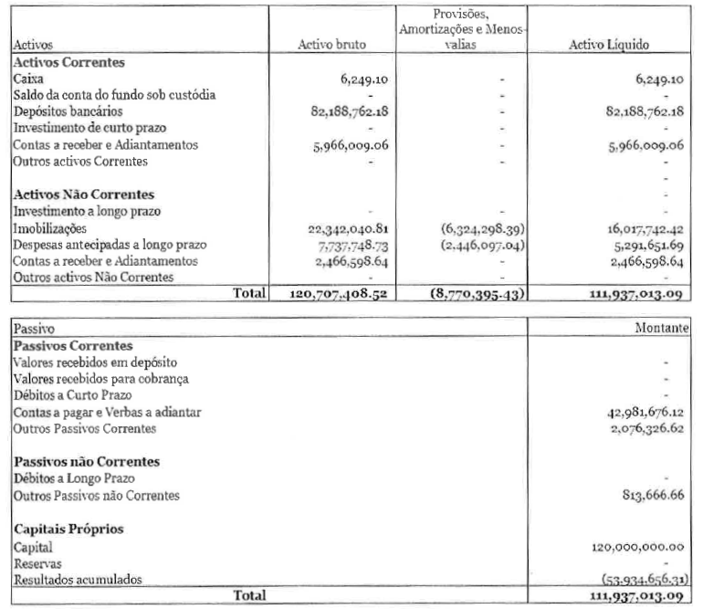 As demonstrações financeiras auditadas compreendem o balanço em 31 de Dezembro de 2019, a demonstração dos resultados, a demonstração de alterações no capital próprio e a demonstração dos fluxos de caixa do exercício findo naquela data, e um resumo das principais políticas contabilísticas e outras notas explicativas.