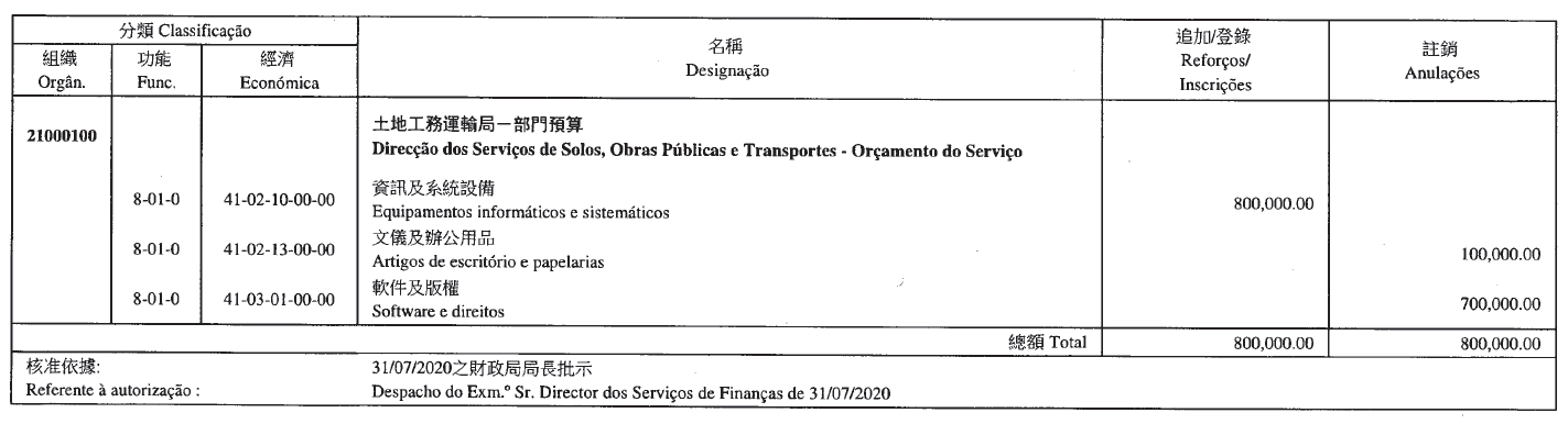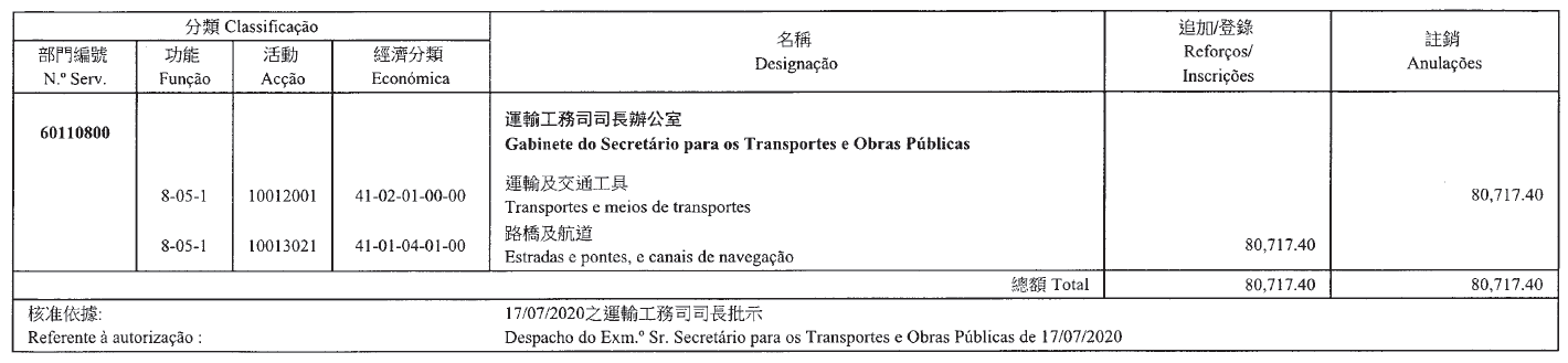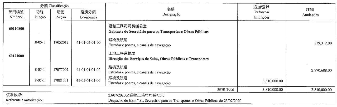 Direcção dos Serviços de Solos, Obras Públicas e Transportes, aos 13 de Agosto de 2020. — A Directora dos Serviços, Chan Pou Ha.