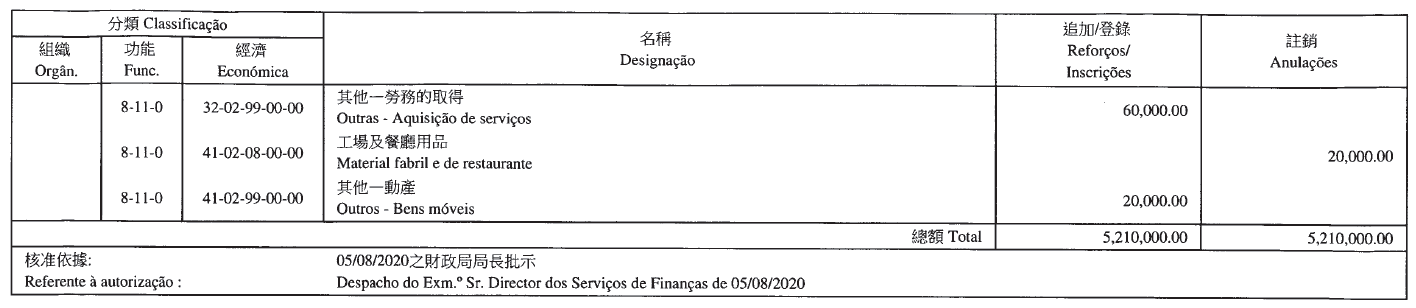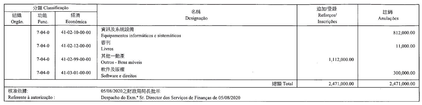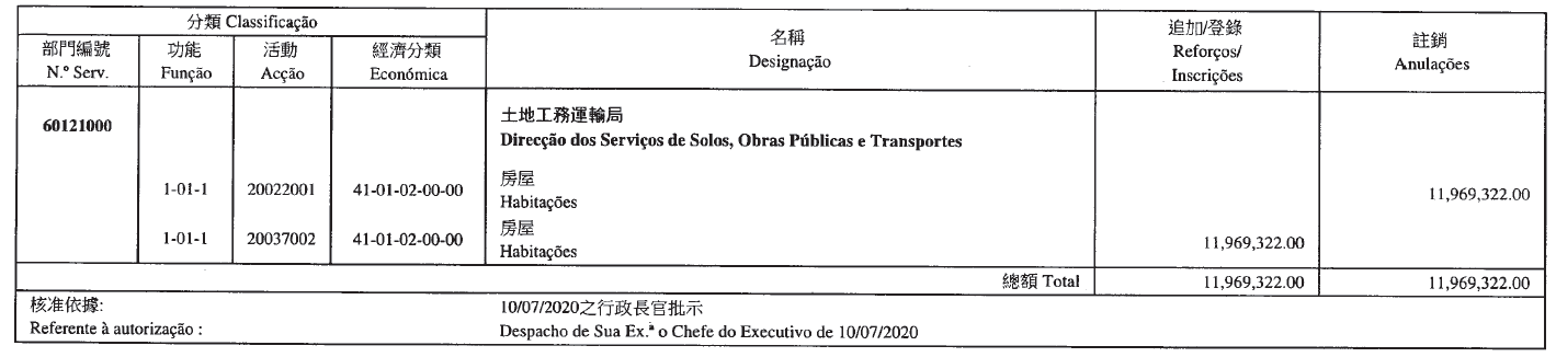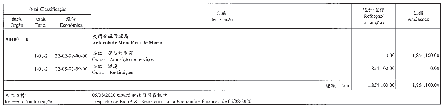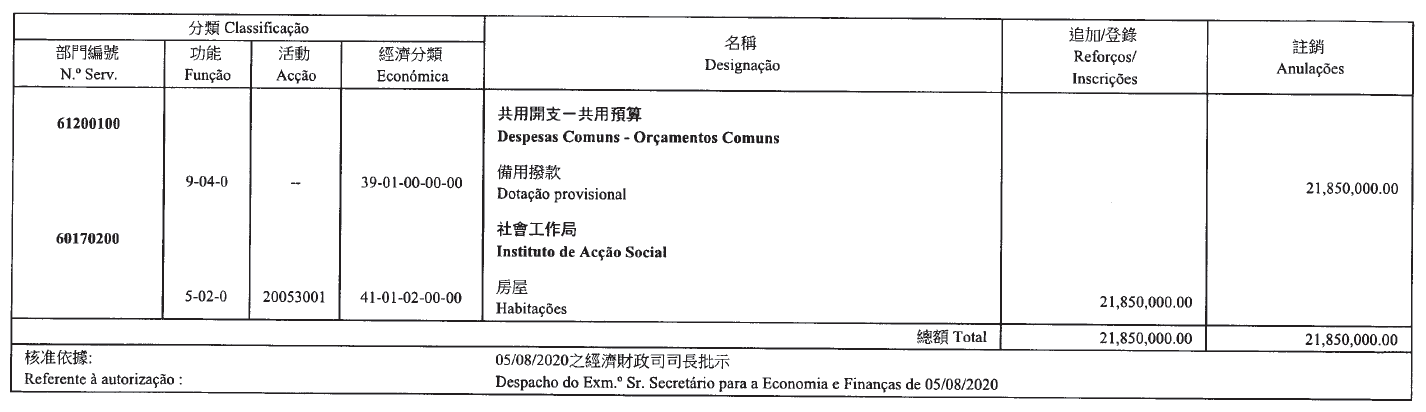 Por despacho de S. Ex.ª o Chefe do Executivo, de 7 de Agosto de 2020: