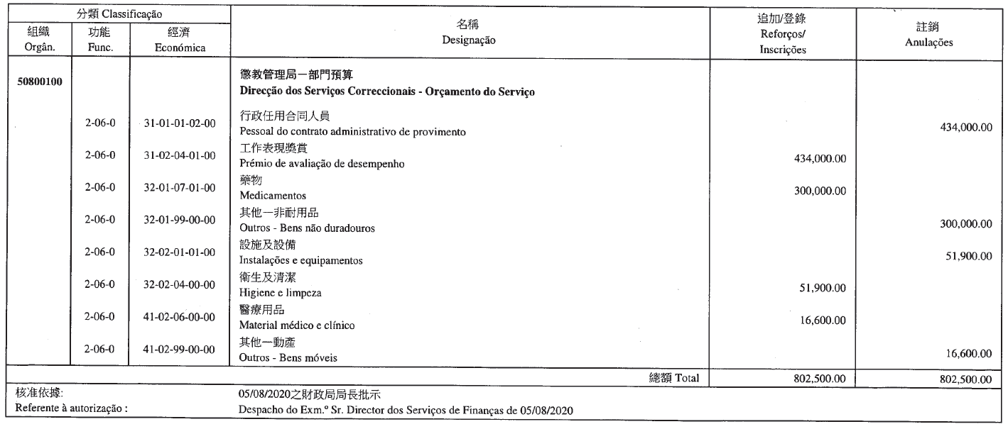 Comissariado contra a Corrupção, aos 13 de Agosto de 2020. — O Chefe do Gabinete, Chan In Chio.