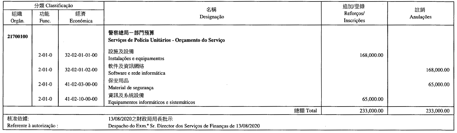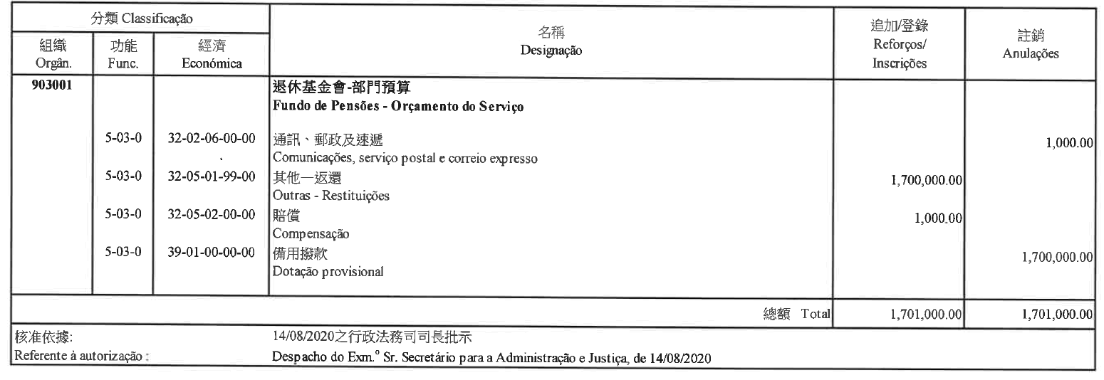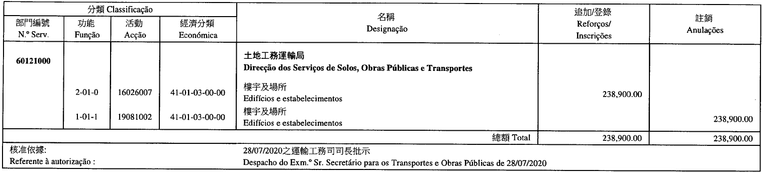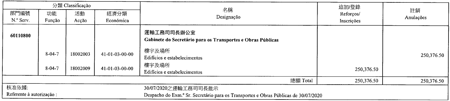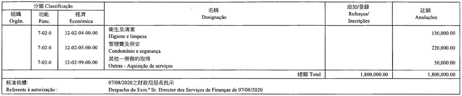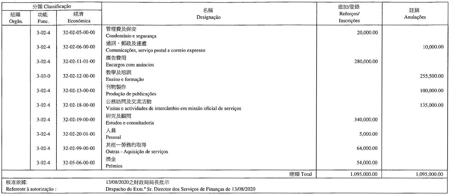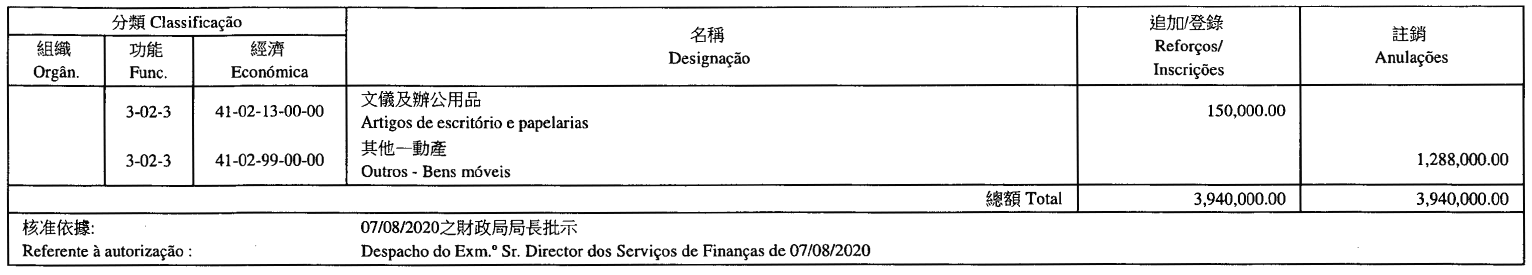 根據經十二月十九日第39/2011號行政法規重新公佈的三月六日第19/2000號行政法規第十三條第一款、八月三日第14/2009號法律第十三條第二款(一)項、第四款、八月十七日第12/2015號法律第四條,以及第3/GPTUI/2016號終審法院院長批示第一款(六)項的規定,本辦公室第一職階勤雜人員何秀芬及江小美的行政任用合同獲更改為第二職階,薪俸點120,自二零二零年八月十五日起生效。