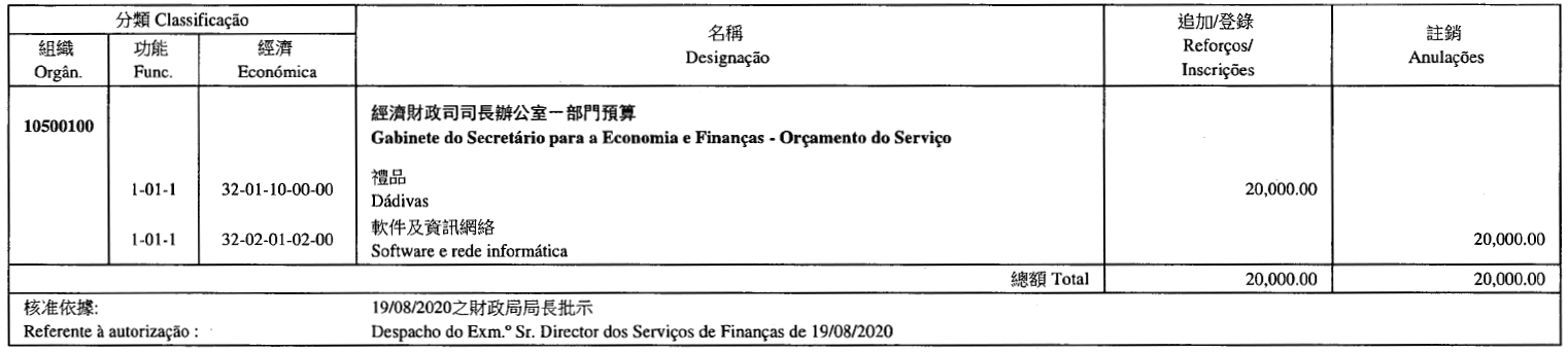 摘錄自審計長於二零二零年七月二十八日的批示: