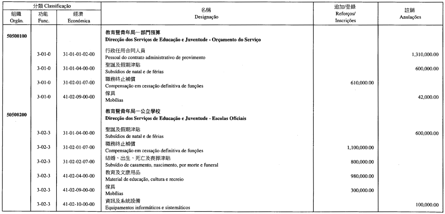 根據經第4/2017號法律修改的第14/2009號法律第十四條第一款(二)項、第二款、第三款及第四款、經第23/2017號行政法規修改的第14/2016號行政法規第五條,以及第12/2015號法律第四條第二款及第三款的規定,以附註方式修改下列工作人員在本局擔任職務的行政任用合同第三條款,自公佈日起生效: