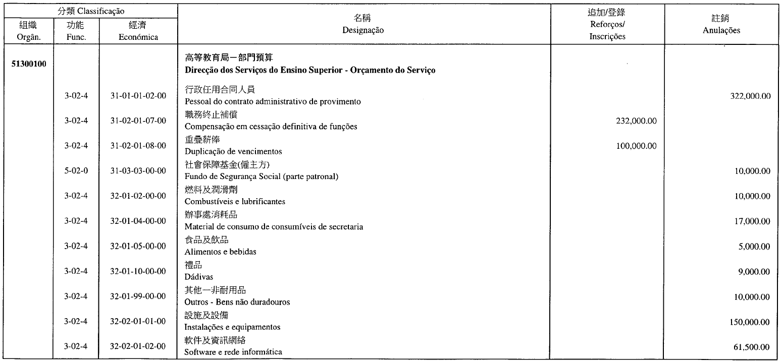 根據第12/2015號法律第四條第二款、第三款及第六條第一款的規定,本局下列人員的行政任用合同獲續期,職級、職階、日期及續約年期如下: