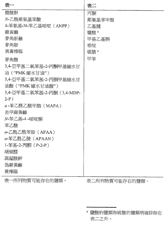 1988年《聯合國禁止非法販運麻醉藥品和精神藥物公約》附表,