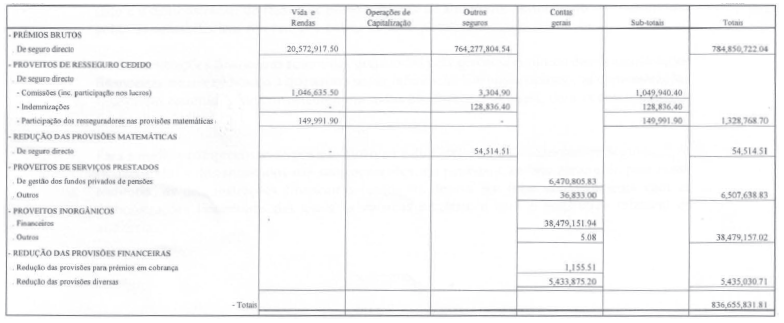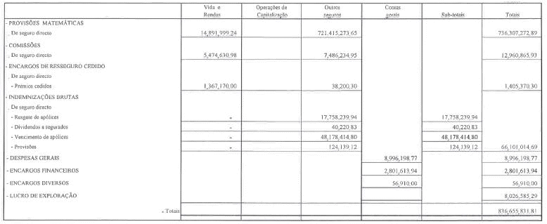 Conta de exploração (Ramo Vida) do exercício de 2019
