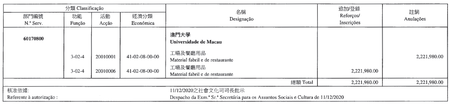 — Ho Lai Chon e Fan Kun Lin progridem para auxiliares, 4.º escalão, índice 140, a partir de 9 de Dezembro de 2020.