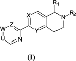 [57] Resumo : 本發明提供了作為HBsAg(HBV表面抗原)和HBV DNA生成的抑制劑用於治療和預防乙型肝炎病毒感染的具有通式(I)的四氫吡啶并嘧啶和四氫吡啶并吡啶類化合物,其中R1、R2、U、W、X、Y和Z如文中所述。