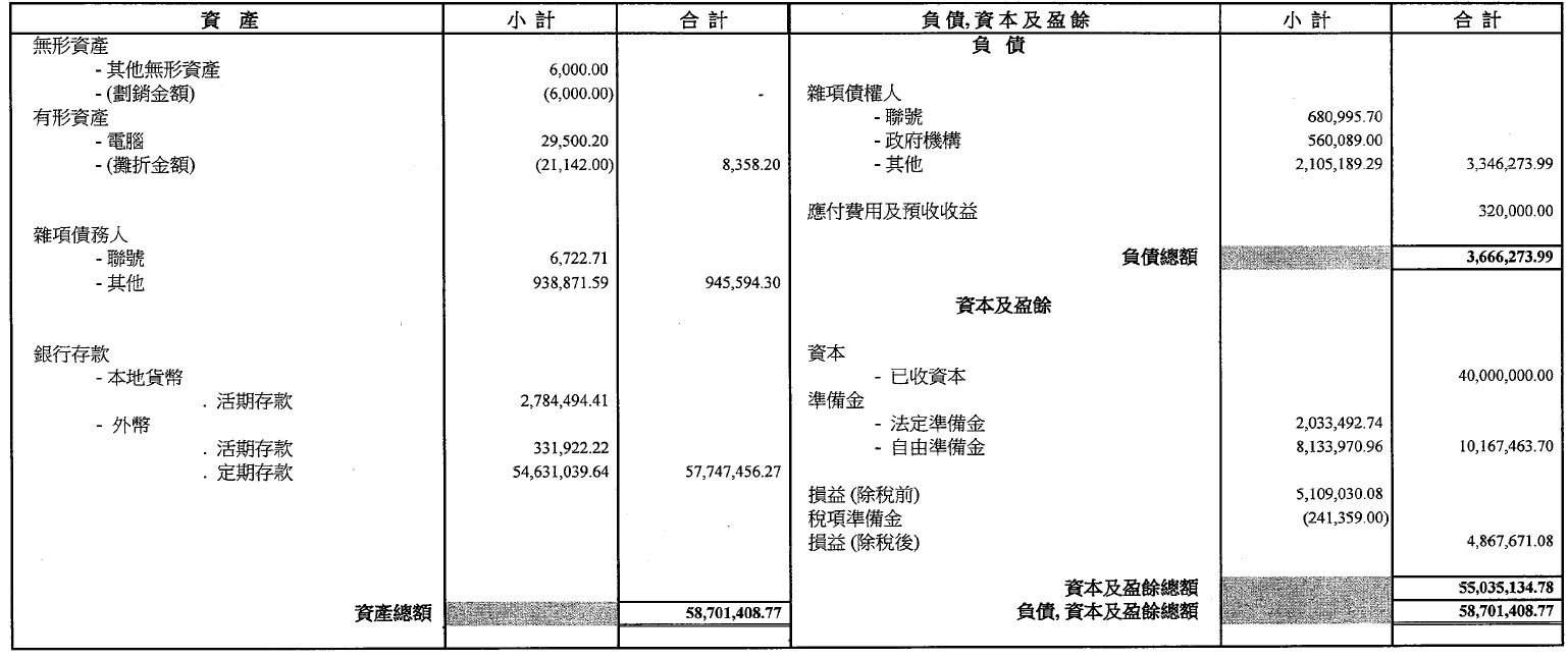 我們認為,摘要財務報表在所有重要方面,均與上述已審核的財務報表及貴公司的賬冊和記錄符合一致。