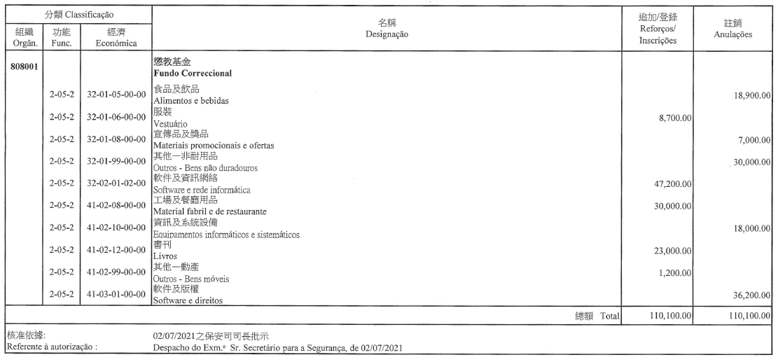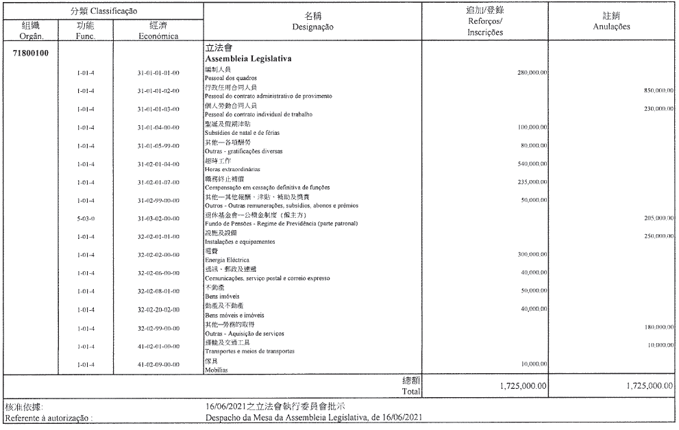 摘錄自行政法務司司長於二零二一年七月八日作出的批示:
