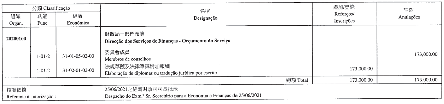 摘錄自行政法務司司長二零二一年六月三十日批示: