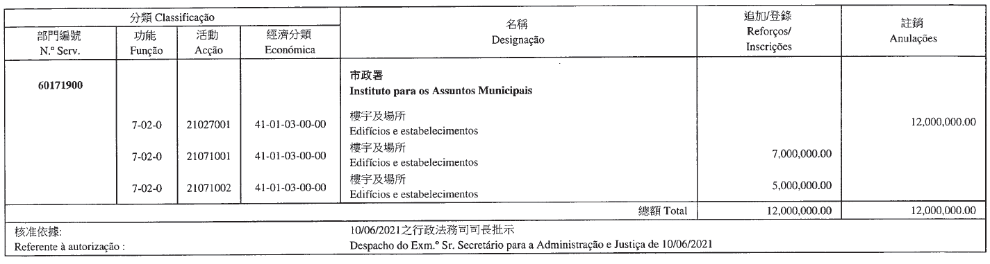 按市政管理委員會副主席於二零二一年六月十日作出之批示,並於同月十一日提交市政管理委員會會議知悉: