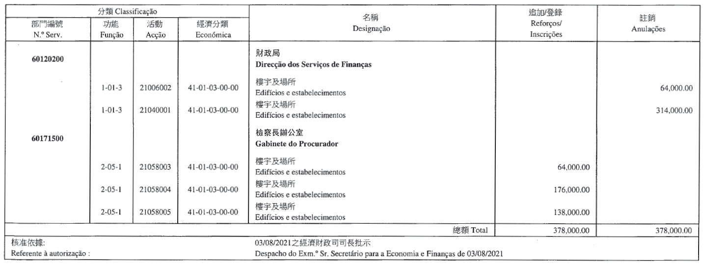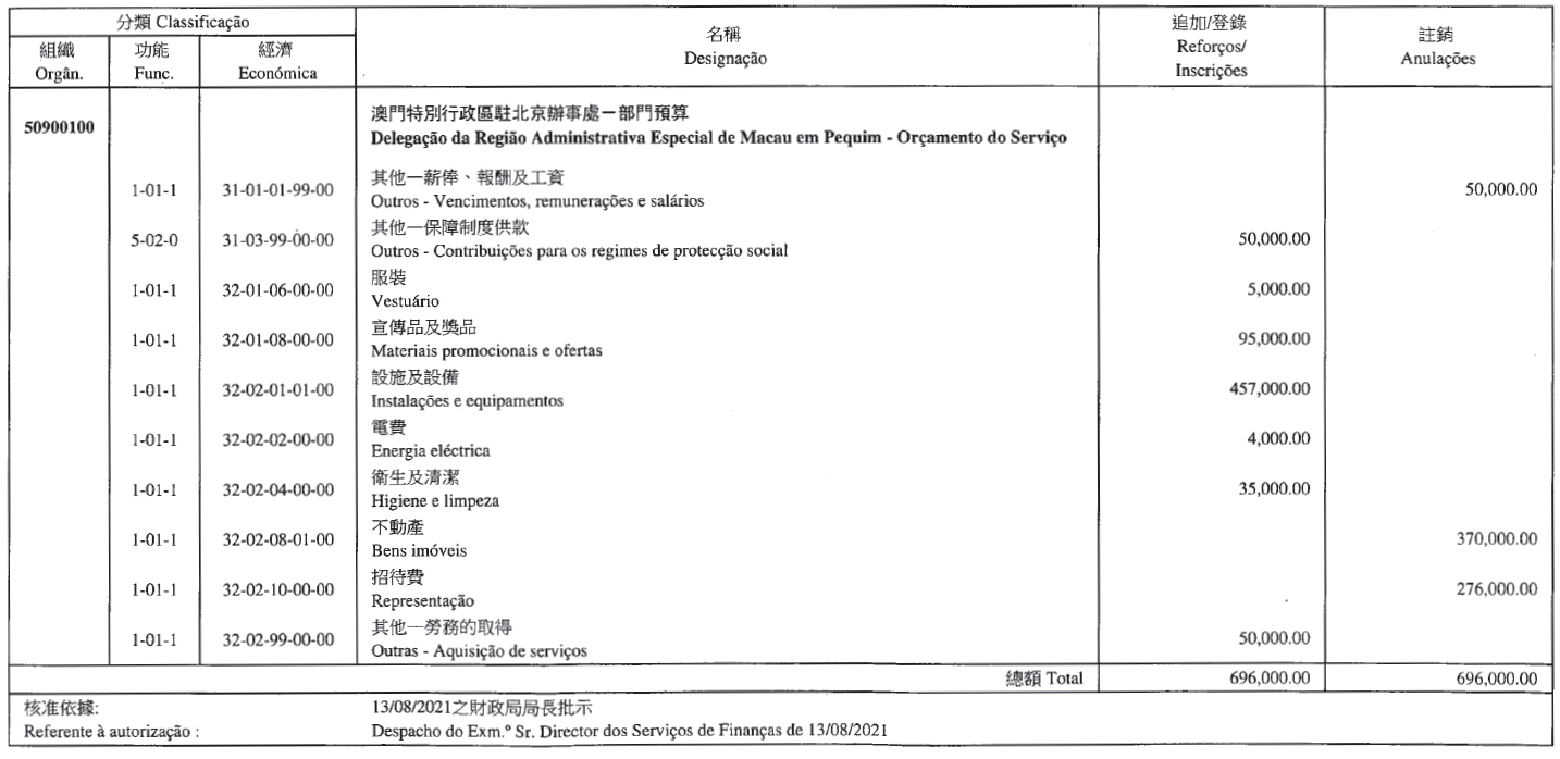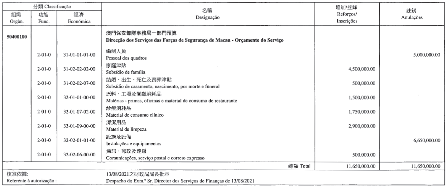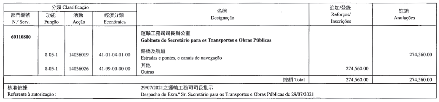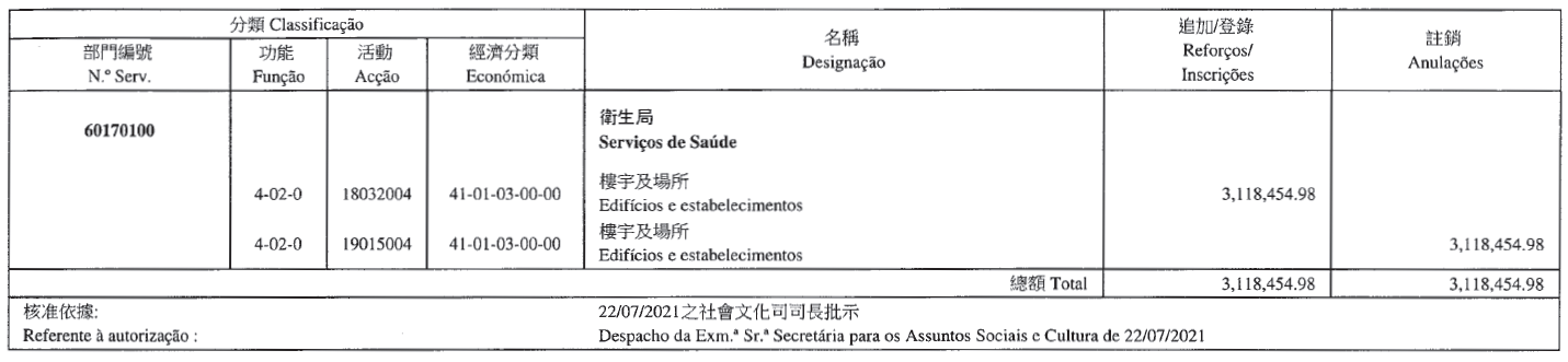 根據第2/2018號行政法規第五十二條及第五十三條第五款的規定,茲公佈下列(澳門特別行政區財政預算/二零二一)款項轉移: