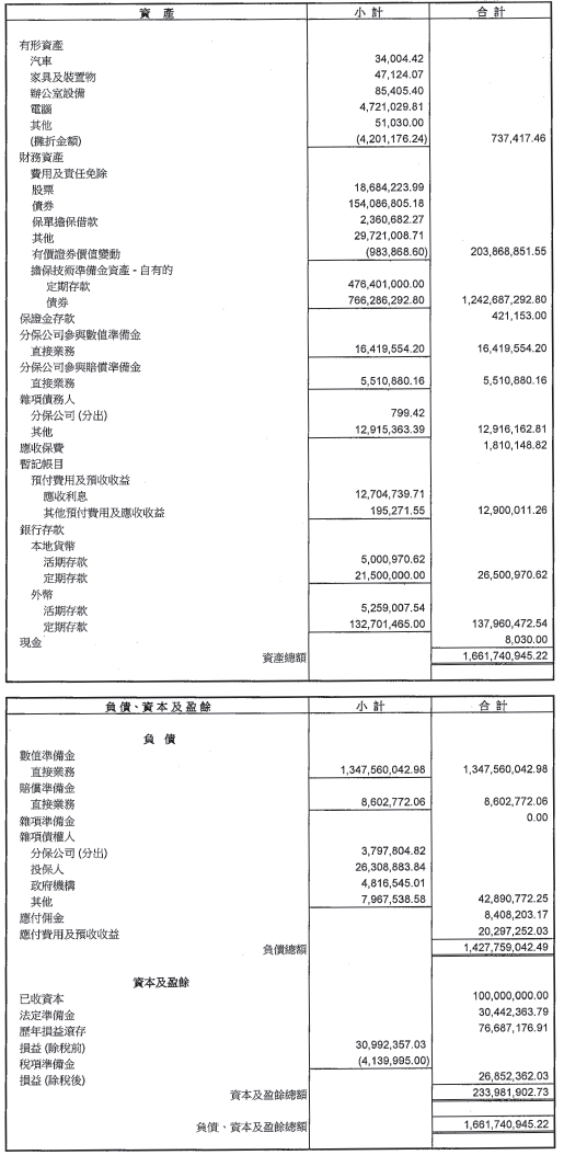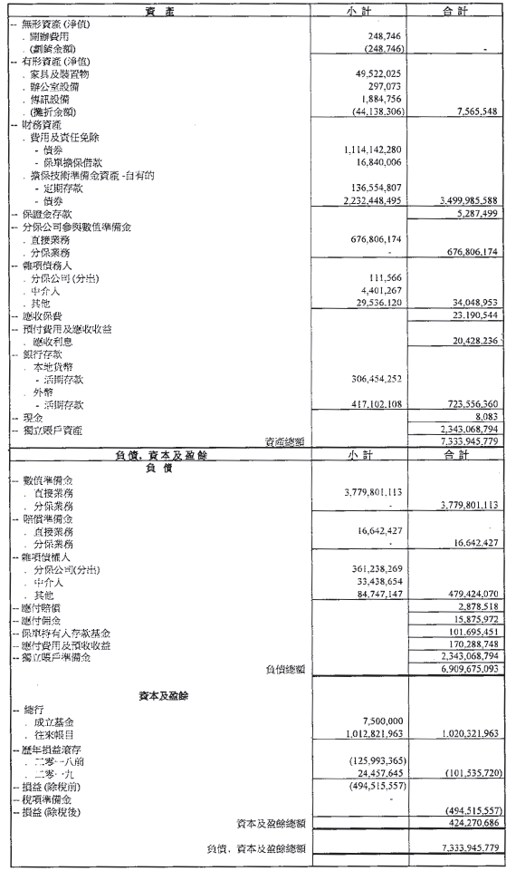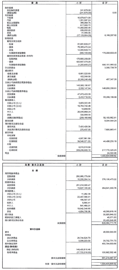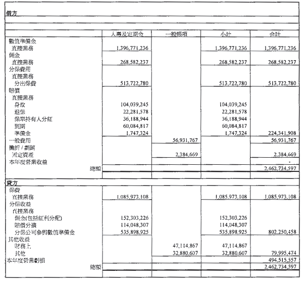 ¤@¯ë«OÀI¤½¥qÀç·~ªí