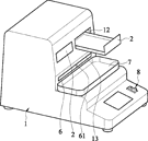 [57] Resumo : 本發明的課題在於提供一種油炸鍋,它用於在電場形成空間內烹調材料,且容易引進,作業性良好。本發明提供如下油炸鍋等,即包括:儲油槽部,包含至少一部分內側面由金屬材料板構成的儲油槽;以及炸籃,由金屬性網製成,相對於儲油槽浸漬脫離自如;且在儲油槽部,設置儲油槽側固定部及通電部,所述儲油槽側固定部用於將炸籃在不與所述內側面通電的情況下配置於儲油槽,所述通電部具備通電電極,所述通電電極配置於儲油槽部作業側面的對面側的儲油槽上部,且用於對配置於儲油槽的炸籃通交流電,與所述內側面絕緣;在炸籃上,設置炸籃側固定部及受電部,所述炸籃側固定部用於與儲油槽側固定部相互作用地將炸籃在不與所述內側面通電的情況下配置於儲油槽,所述受電部用於從通電電極受電而對構成炸籃的金屬性網通電。