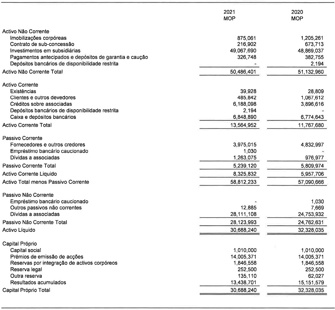 Auditámos as demonstrações financeiras consolidadas da Sociedade e do Grupo referentes ao exercício findo em 31 de Dezembro de 2021 de acordo com as Normas Sucintas de Auditoria emitidas pelo Governo da Região Administrativa Especial de Macau, e expressámos a nossa opinião sem reservas sobre estas demonstrações financeiras, no relatório de 23 de Fevereiro de 2022.
