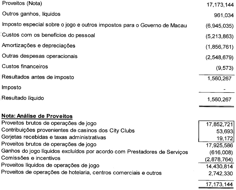 A Gerência é responsável pela preparação de um resumo das demonstrações financeiras consolidadas auditadas de acordo com a Lei n.º 16/2001 “Regime jurídico da exploração de jogos de fortuna ou azar em casino”.