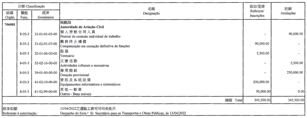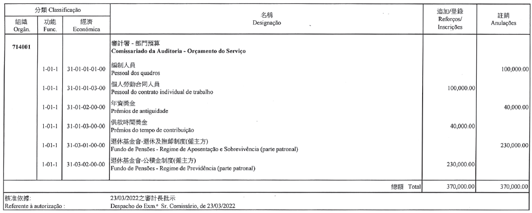 根據經十二月十九日第39/2011號行政法規重新公佈的三月六日第19/2000號行政法規第十三條第一款、八月三日第15/2009號法律第二條第三款(一)項及第五條,以及八月十日第26/2009號行政法規第八條的規定,因具備適當經驗及專業能力履行職務,本辦公室行政暨財政廳廳長陳燕玲碩士的定期委任獲續期一年,由二零二二年五月一日起生效。