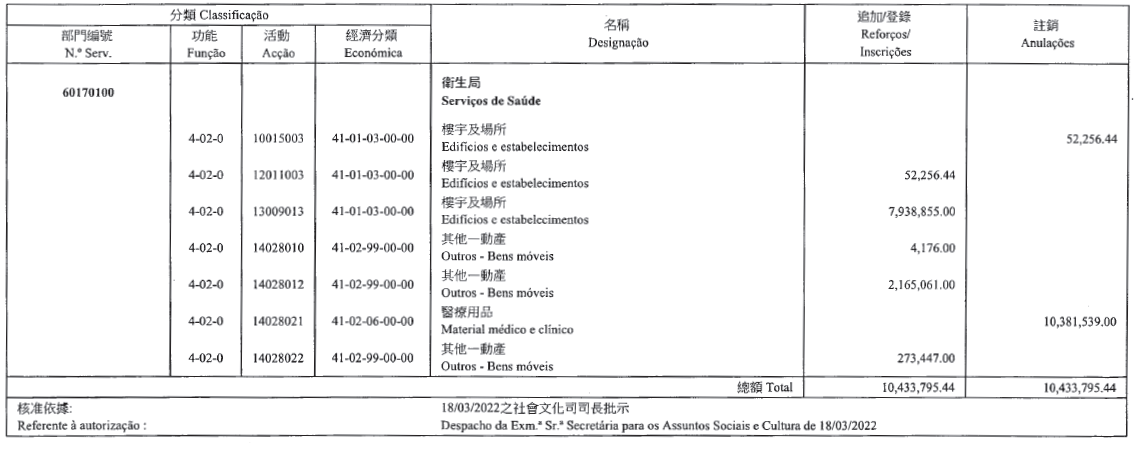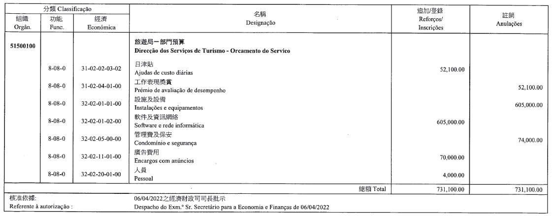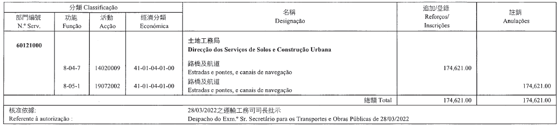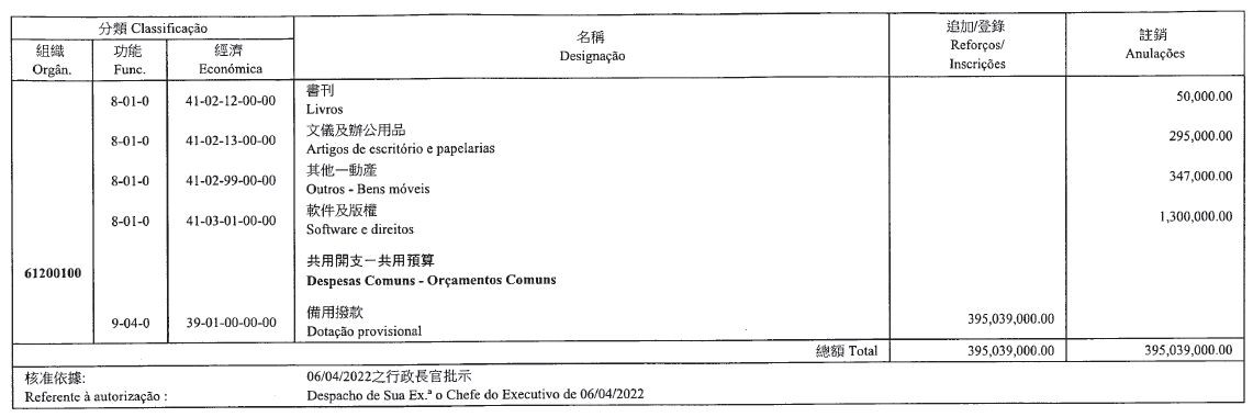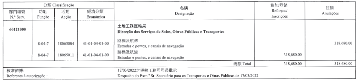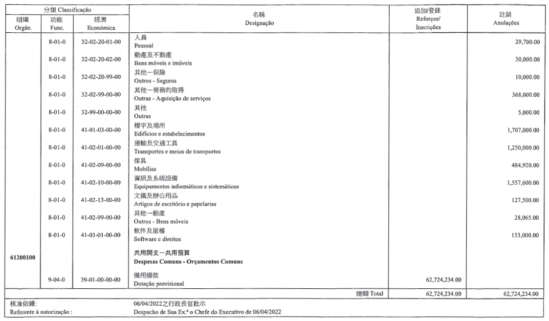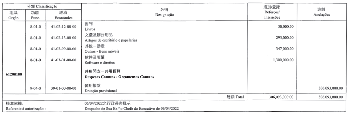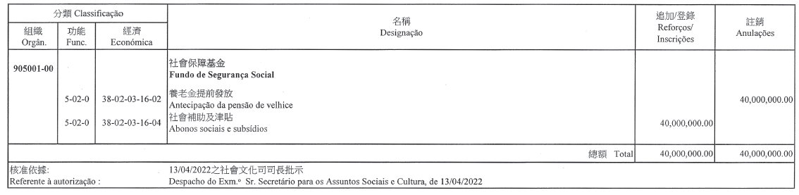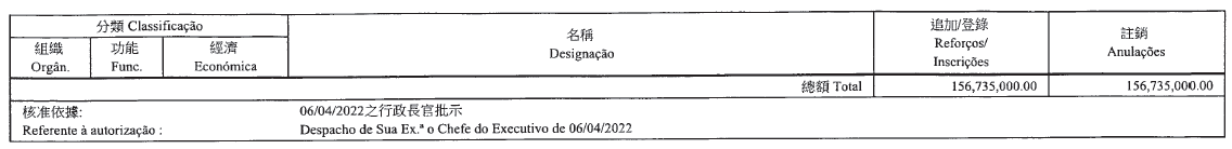 根據第2/2018號行政法規第五十二條及第五十三條第五款的規定,茲公佈下列(澳門特別行政區財政預算/二零二二)款項轉移: