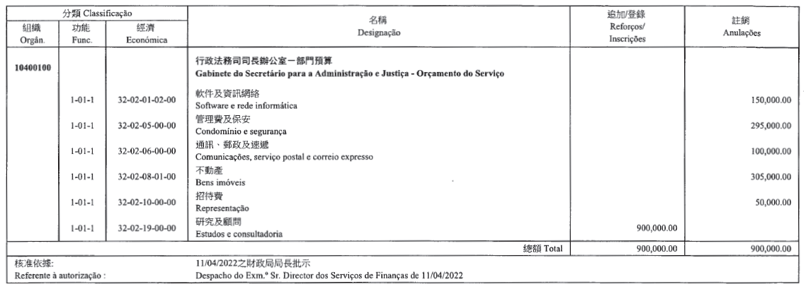 摘錄自行政法務司司長二零二二年三月十日批示: