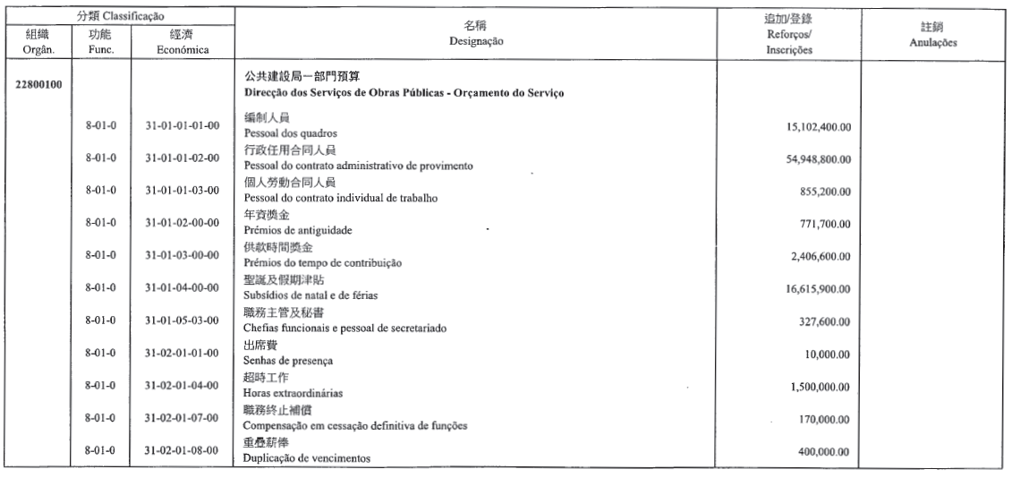 根據現行第14/2009號法律第十四條第一款(二)項、第二款、第三款及第四款、現行第14/2016號行政法規第五條,以及現行第12/2015號法律第四條第二款及第三款的規定,以附註方式修改下列工作人員在本局擔任職務的行政任用合同第三條款,自公佈日起生效: