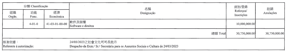 根據第2/2018號行政法規第五十二條及第五十三條第五款的規定,茲公佈下列(澳門特別行政區財政預算/二零二三)款項轉移: