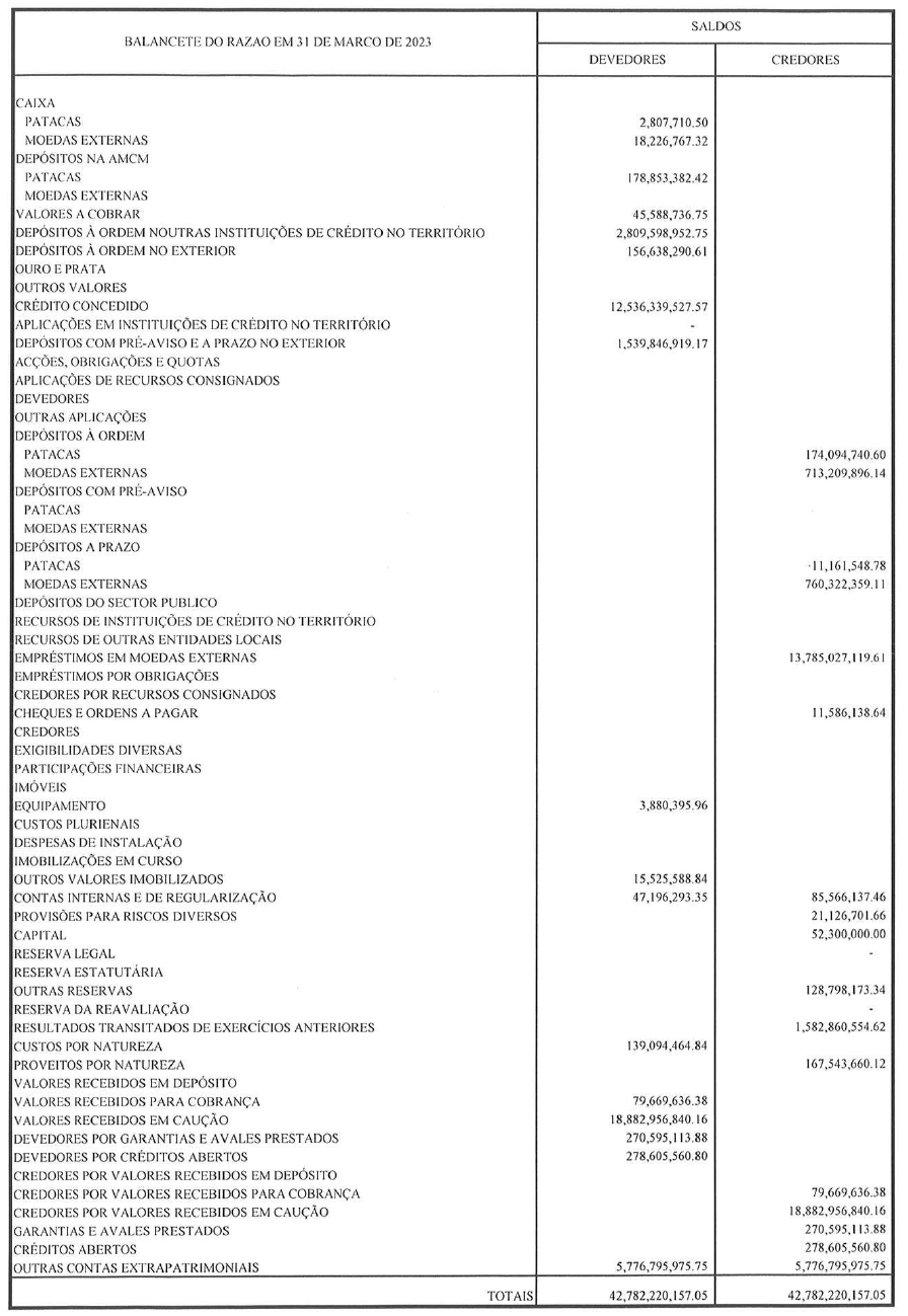 | 永豐商業銀行股份有限公司澳門分行試算表於二零二三年三月三十一日 |