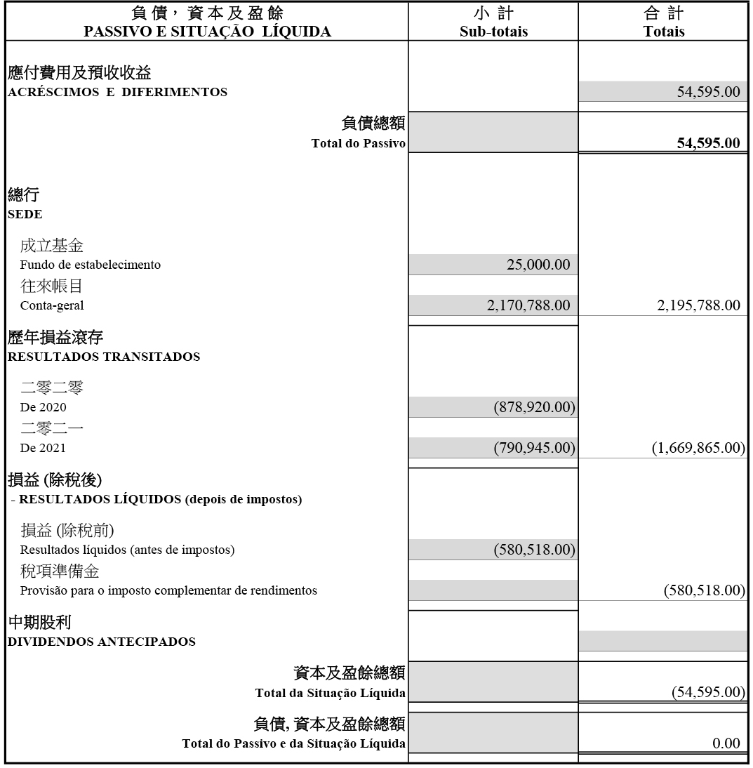 管理層負責按照保險業務法律制度(透過第229/2020號行政長官批示重新公佈,經第21/2020號法律修改的六月三十日第27/97/M號法令)編製簡要財務報表。