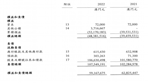| 財務狀況表 於二零二二年十二月三十一日 | 財務狀況表(續) 於二零二二年十二月三十一日 |