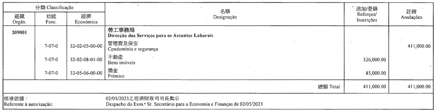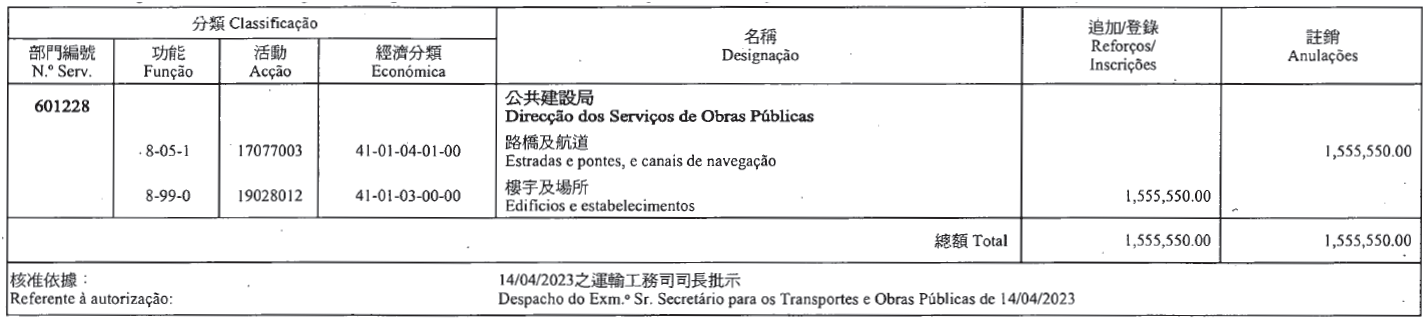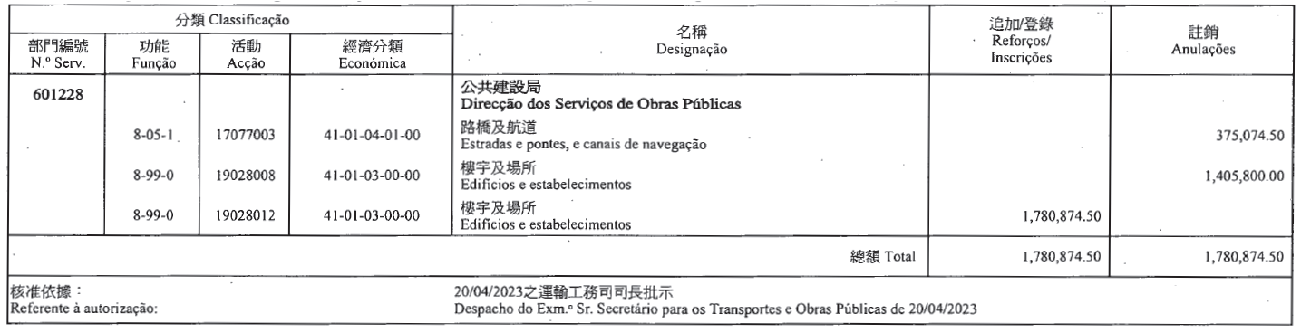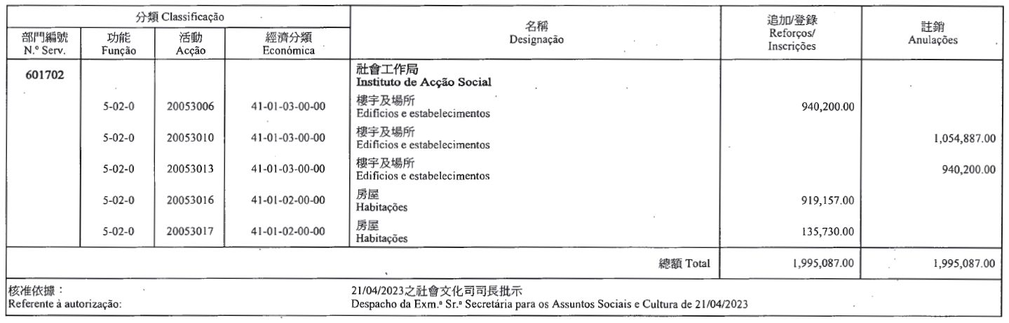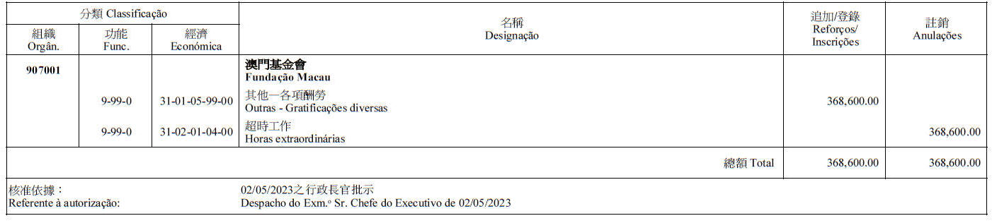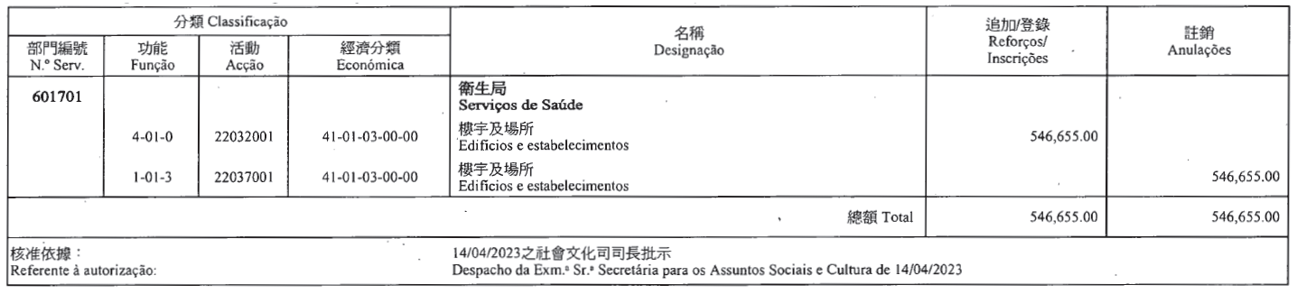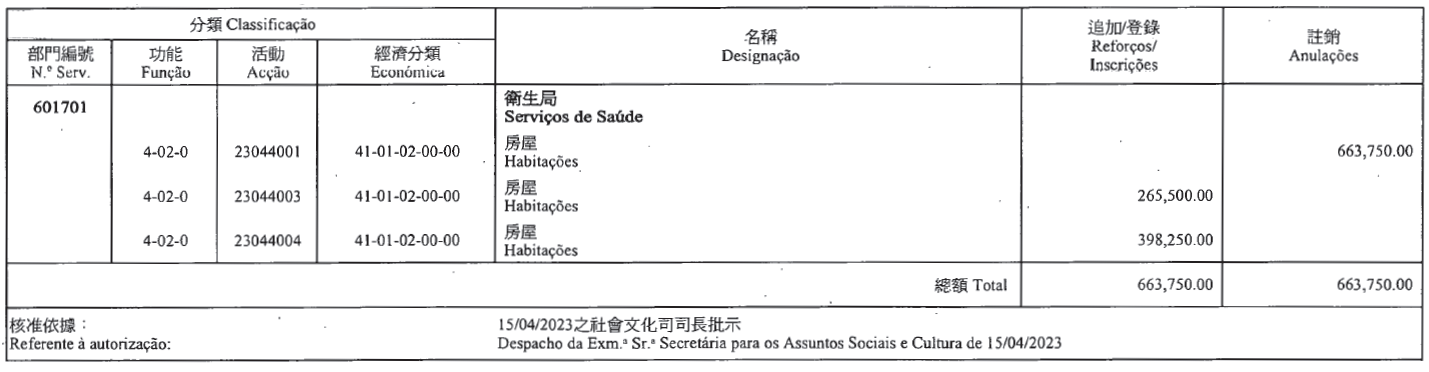 根據第2/2018號行政法規第五十二條及第五十三條第五款的規定,茲公佈下列(澳門特別行政區財政預算/二零二三)款項轉移: