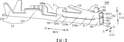 [57] Resumo : 本實用新型公開了一種端子、電連接器、線束和車輛,端子包括主體,主體包括插配部,插配部圍成有插配腔,沿插配部的周側腔壁具有第一端和第二端,且周側腔壁具有第一配合區域,第一配合區域位於第一端和第二端之間,第一端與第一配合區域限位配合。根據本實用新型的端子,具有良好的結構穩定性。
