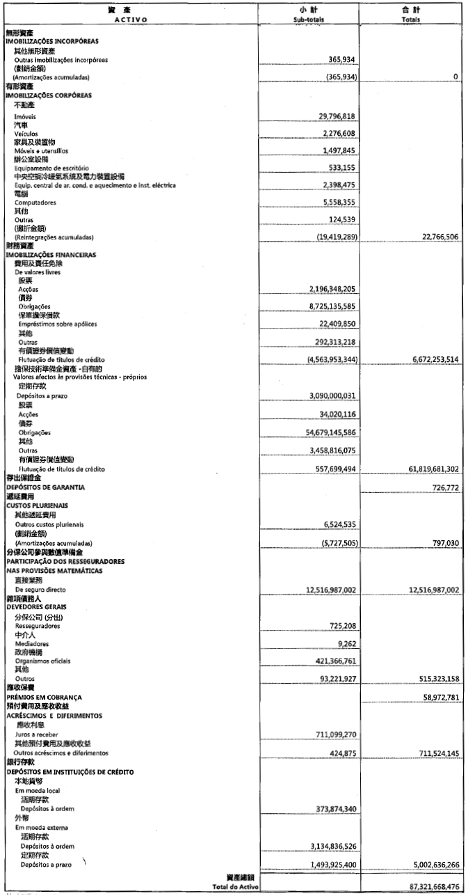 Para os accionistas da Fidelidade Macau Vida - Companhia de Seguros, S.A.