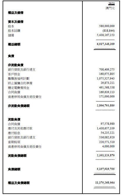 |  | 澳門有線電視股份有限公司財務狀況表於二零二三年十二月三十一日 |