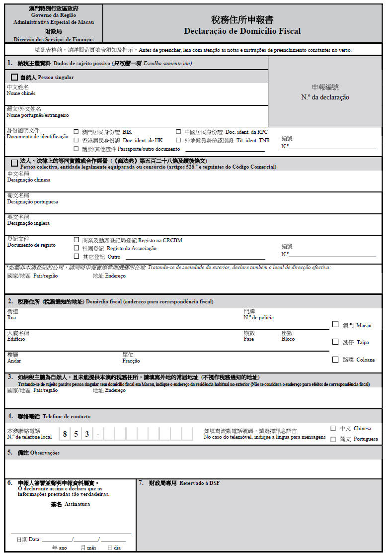一、核准稅務住所申報書式樣,該式樣載於作為本批示組成部分的附件。