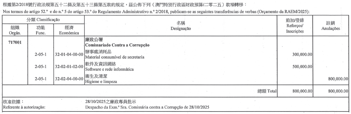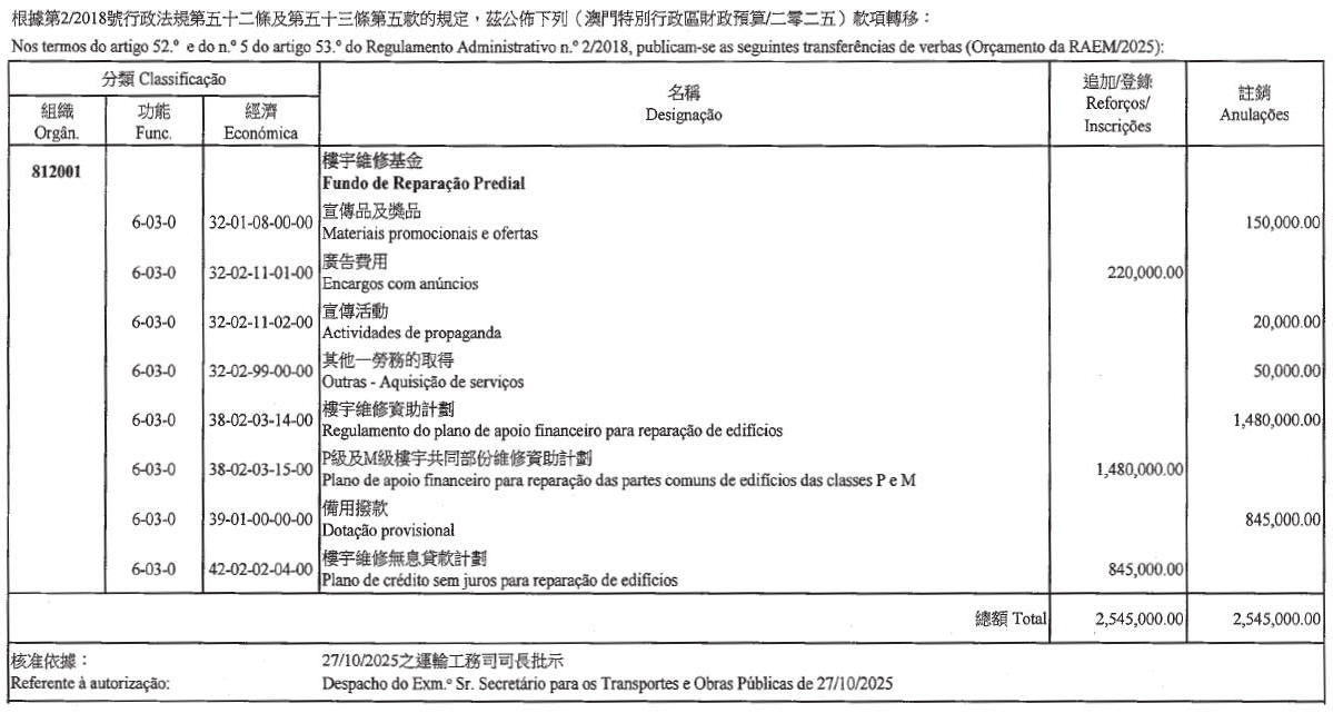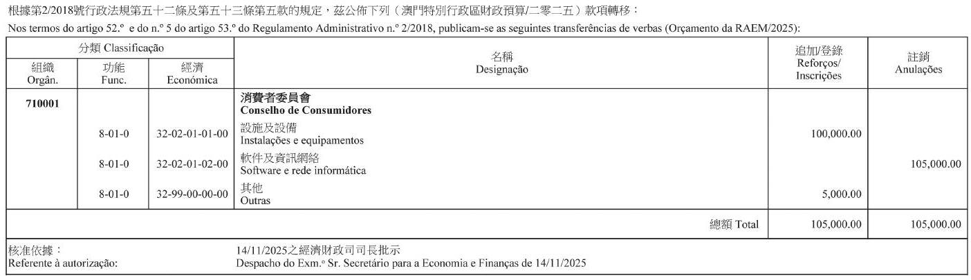 按照行政法務司司長於二零二五年十一月十七日作出的批示:
