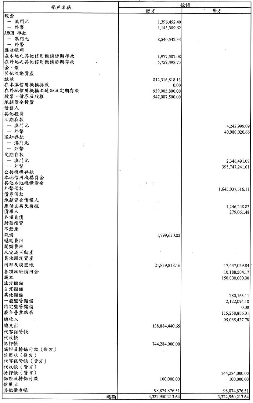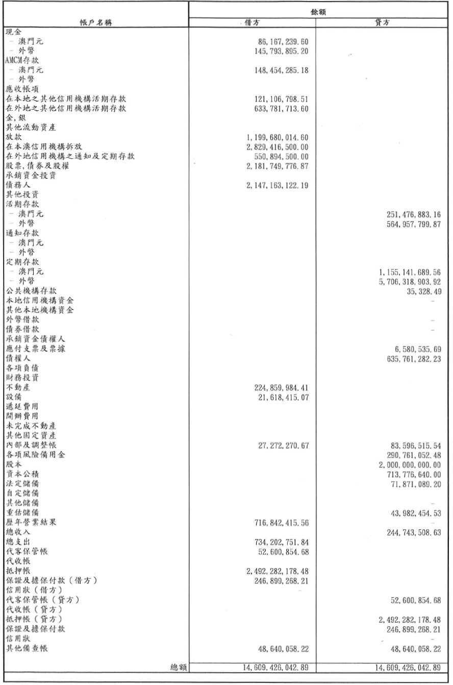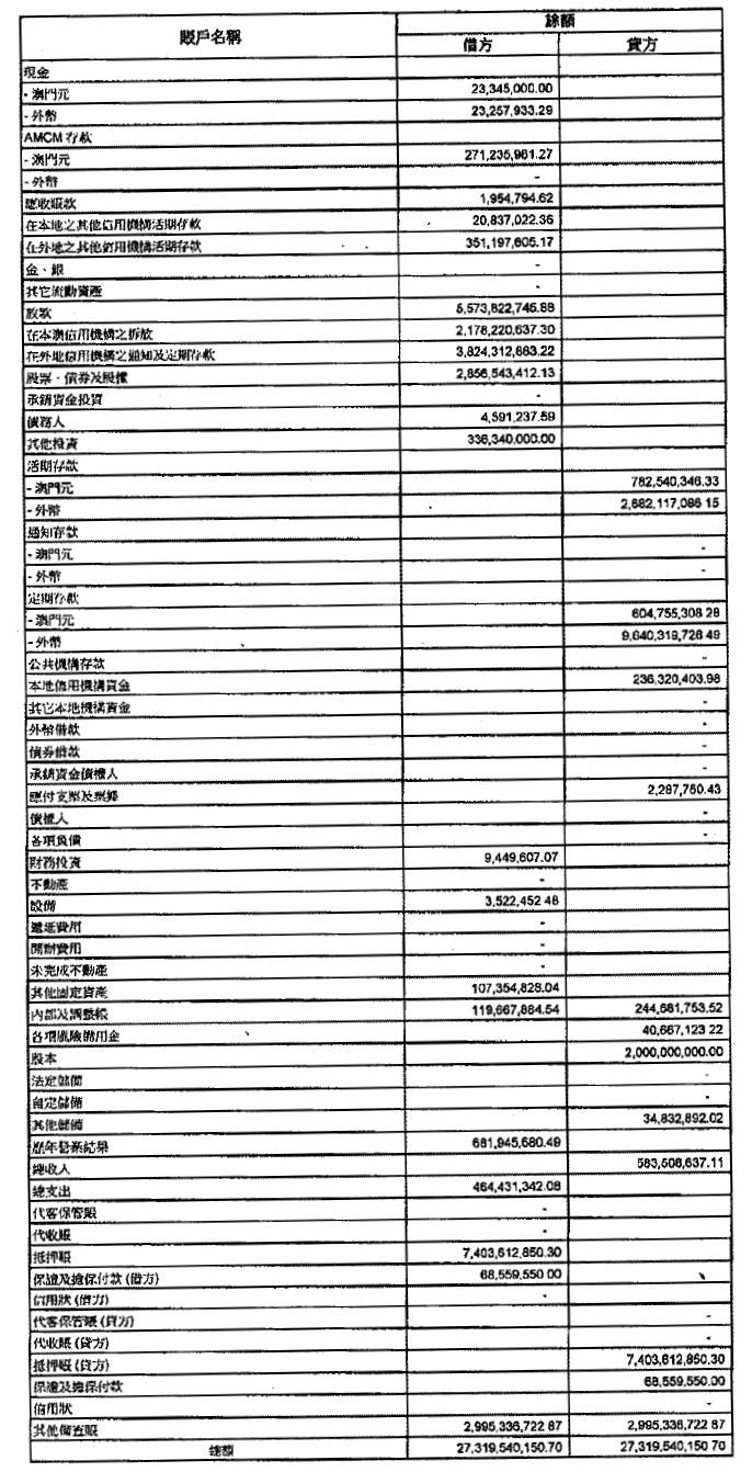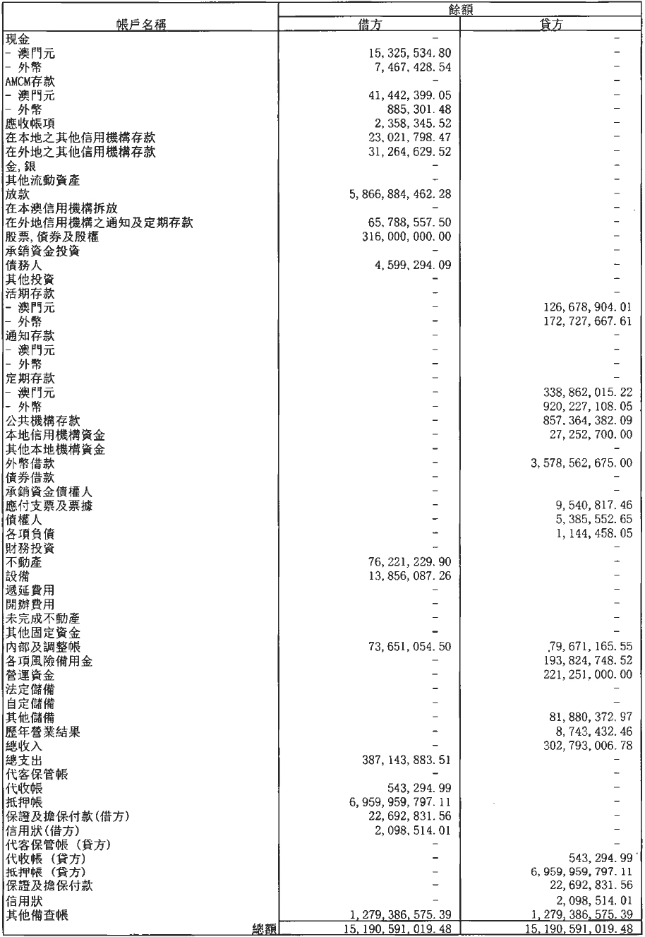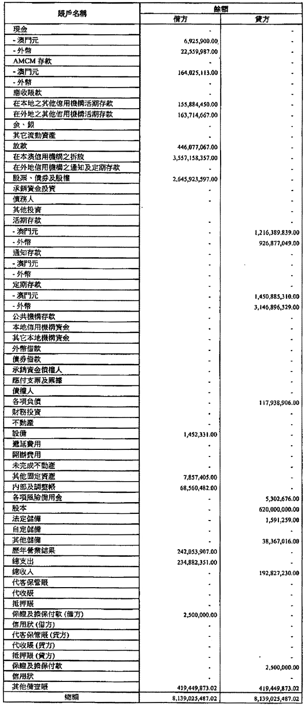 單位:澳門元