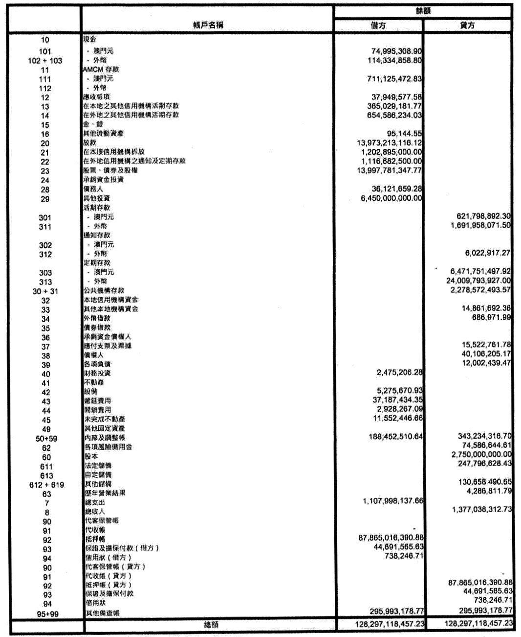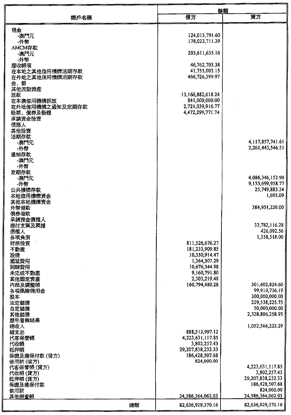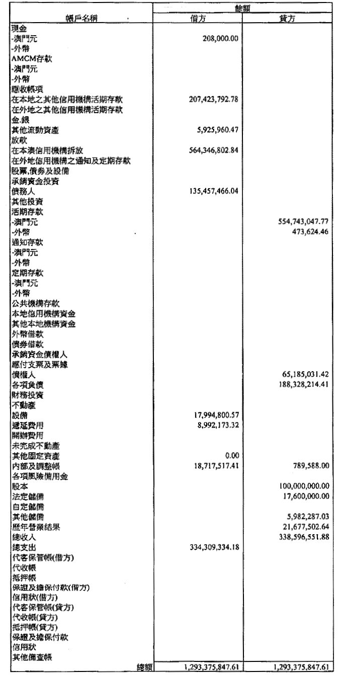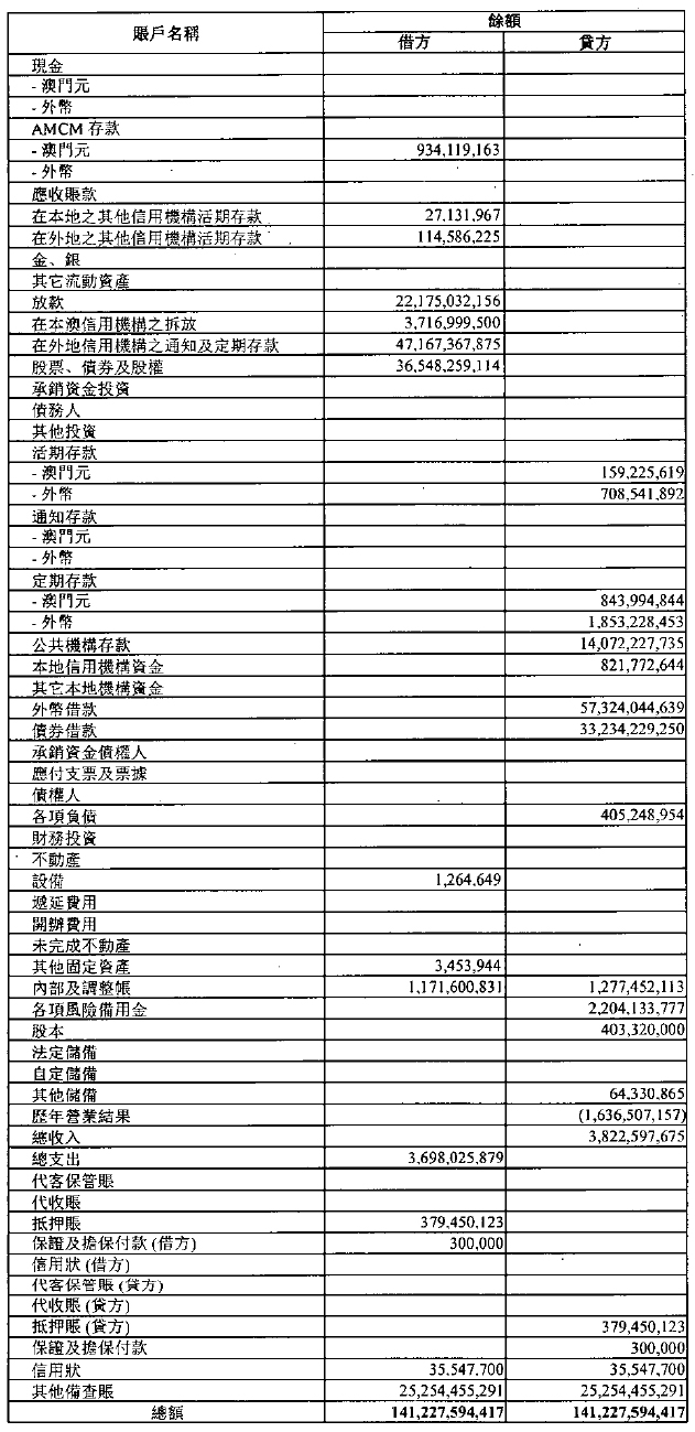 單位:澳門元