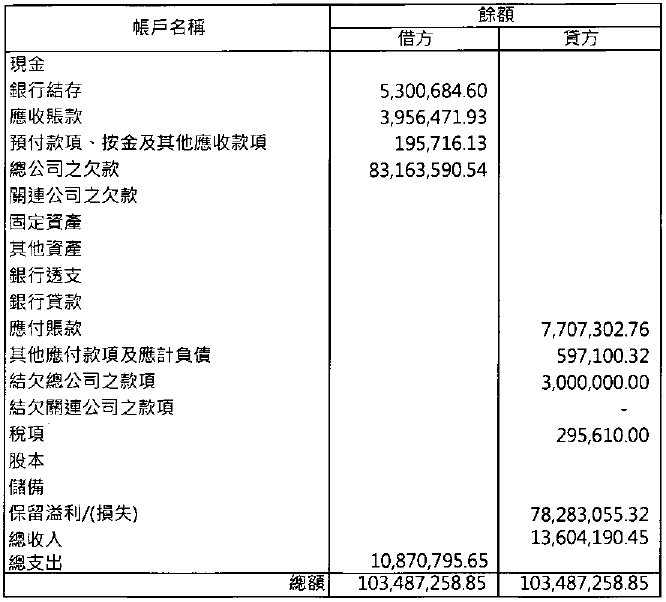 試算表於二零二五年十二月三十一日
