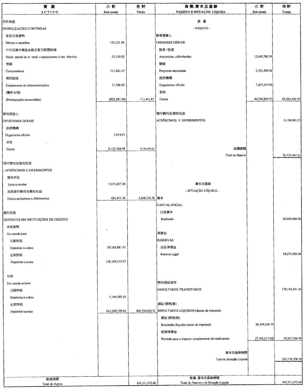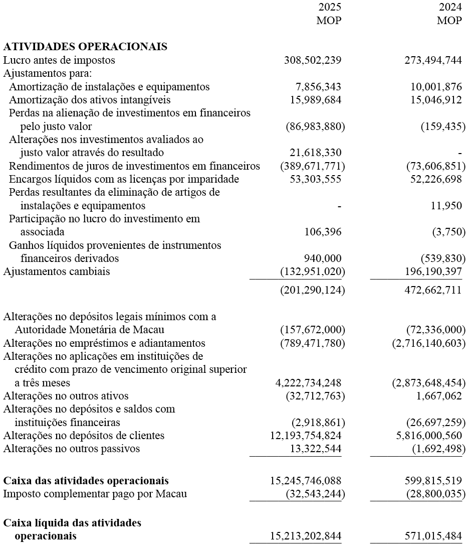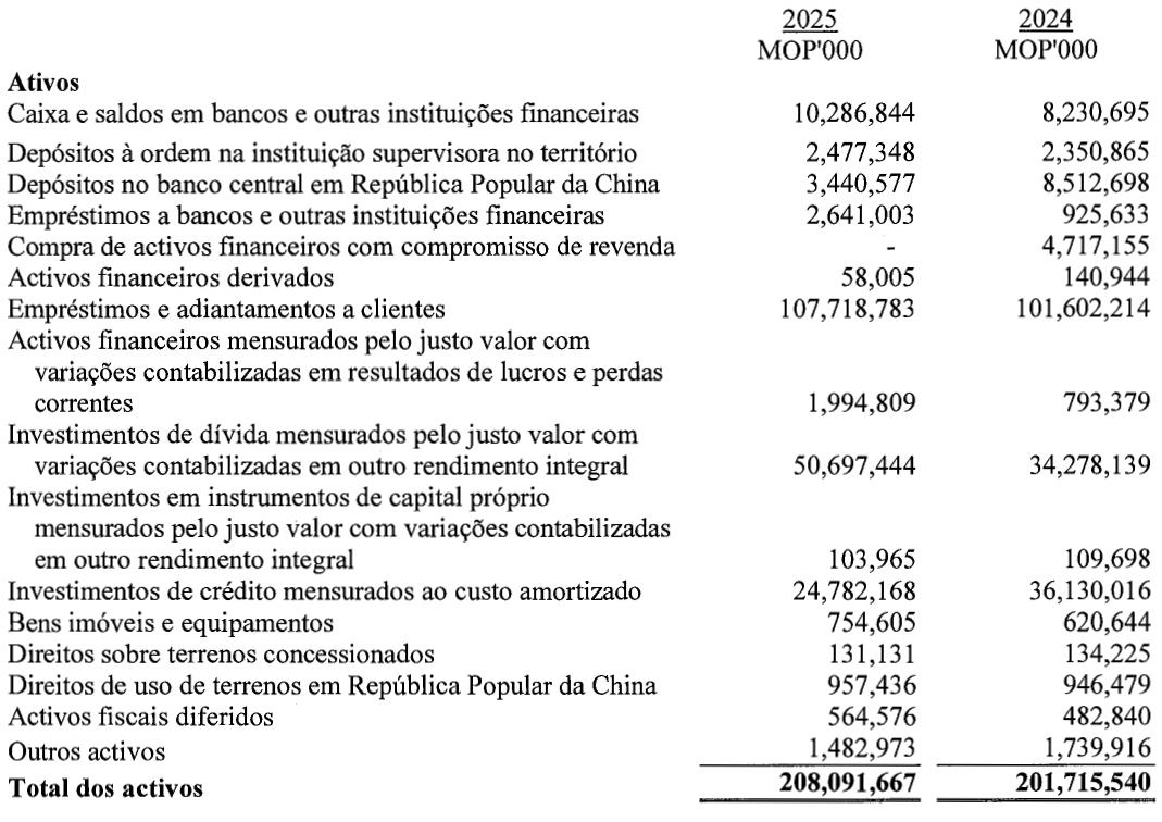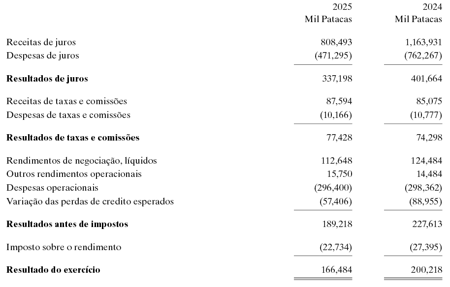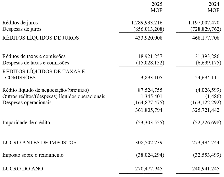 Em nossa opinião, as demonstrações financeiras resumidas extraídas das demonstrações financeiras auditada da Sucursal relativas ao exercício findo em 31 de Dezembro de 2025 são consistentes, em todos os aspectos materiais, com essas demonstrações financeiras, de acordo com 1) do artigo 86.º do Regime Jurídico do Sistema Financeiro do território de Macau, aprovado pela Lei n.º 13/2023.