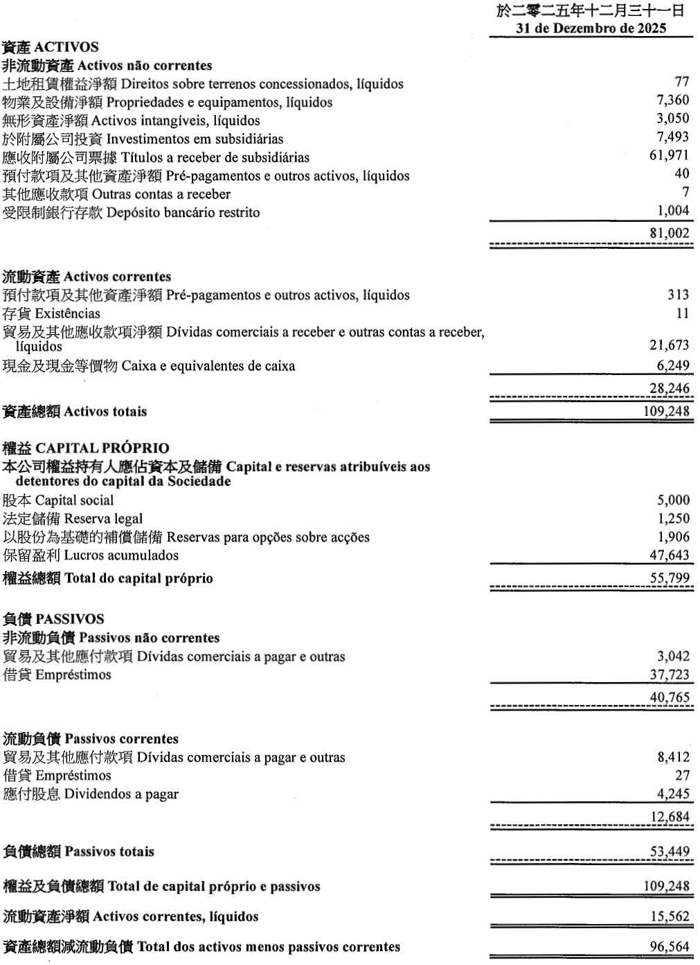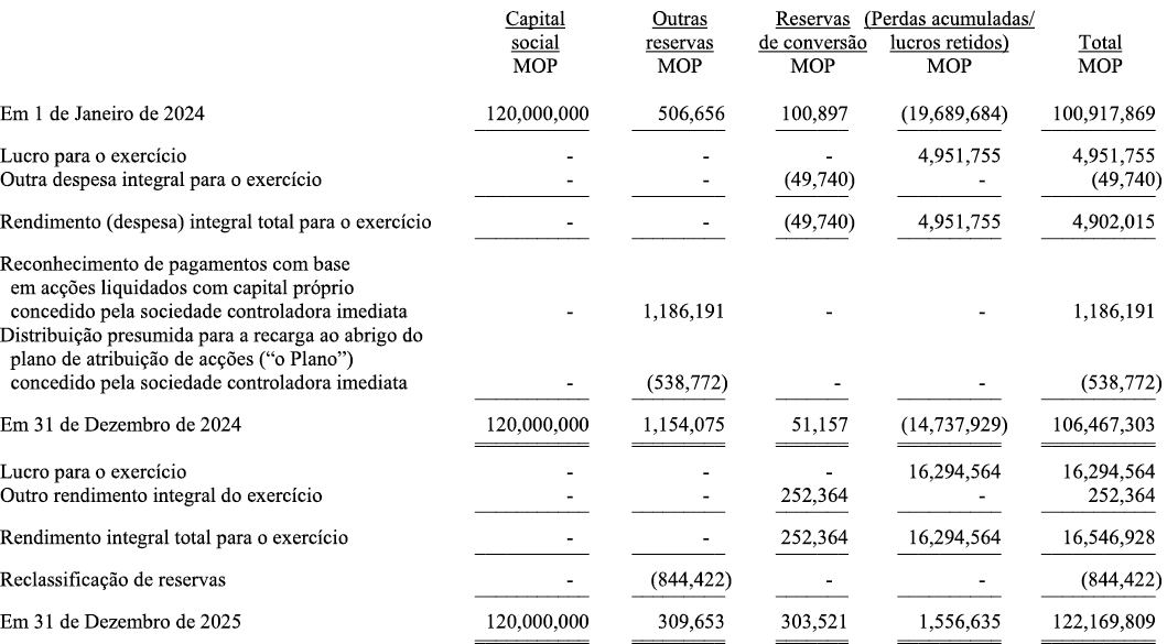 As demonstrações financeiras consolidadas e individuais resumidas não contêm todas as divulgações exigidas pelas Normas de Relato Financeiro emitidas pelo Governo da Região Administrativa Especial de Macau. Por isso, a leitura das demonstrações financeiras consolidadas e individuais resumidas não substitui a leitura das demonstrações financeiras consolidadas e individuais auditadas do Grupo e da Sociedade.