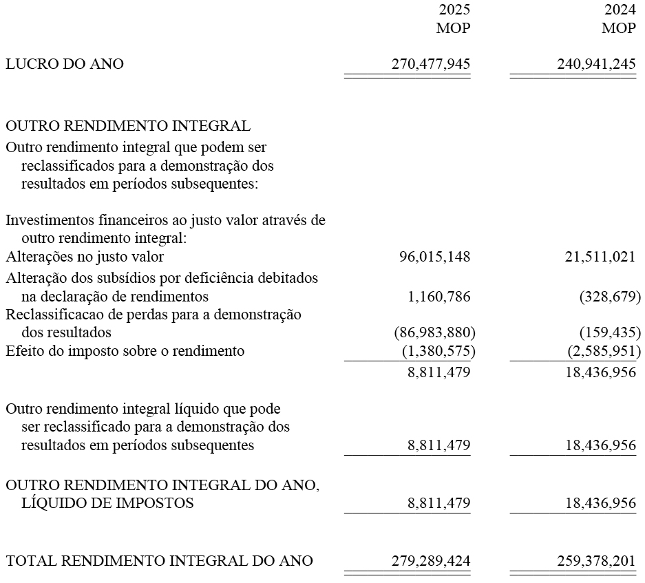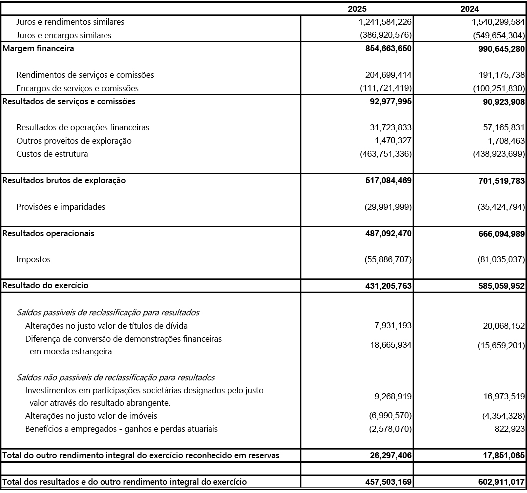 Demonstração dos resultados e a demonstração do outro rendimento de 2025
